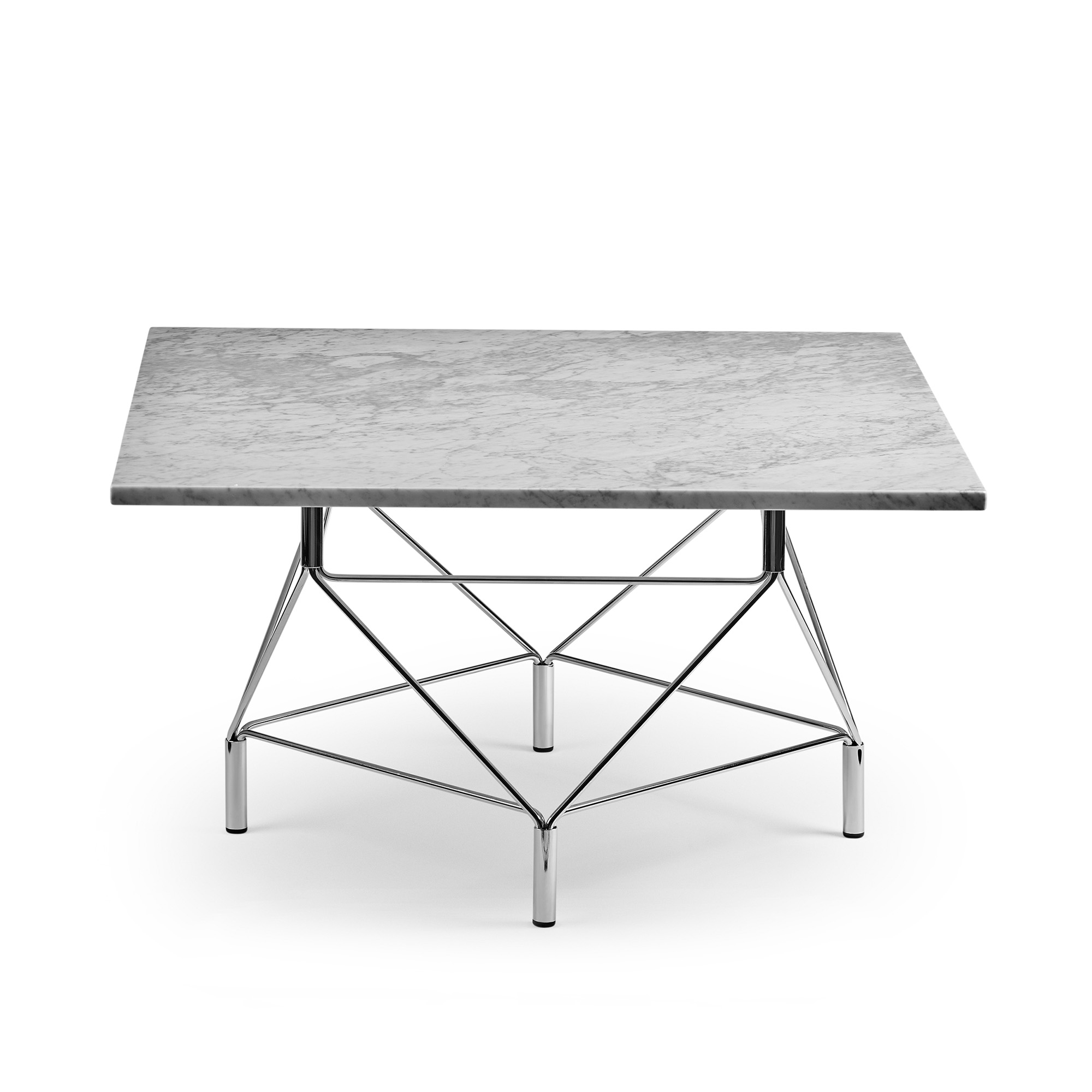 Eilersen - Spider Square 80x80, Marmor Vit, Underrede Förkromad, 36 cm - Soffbord - Andreas Hansen - Silver,Vit - Glas/Sten