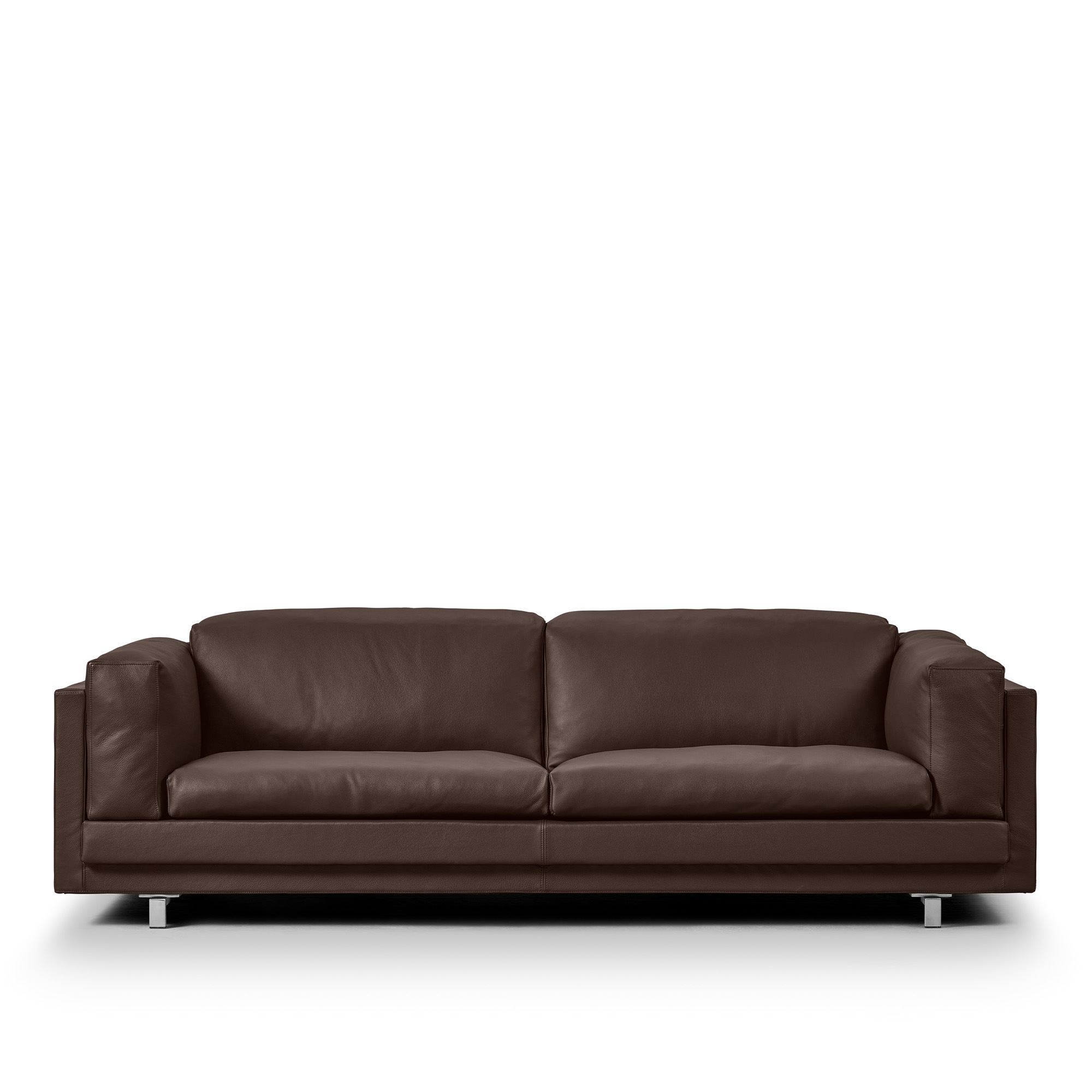 Soffan kommer med fast klädsel och ben i borstat rostfritt stål.
