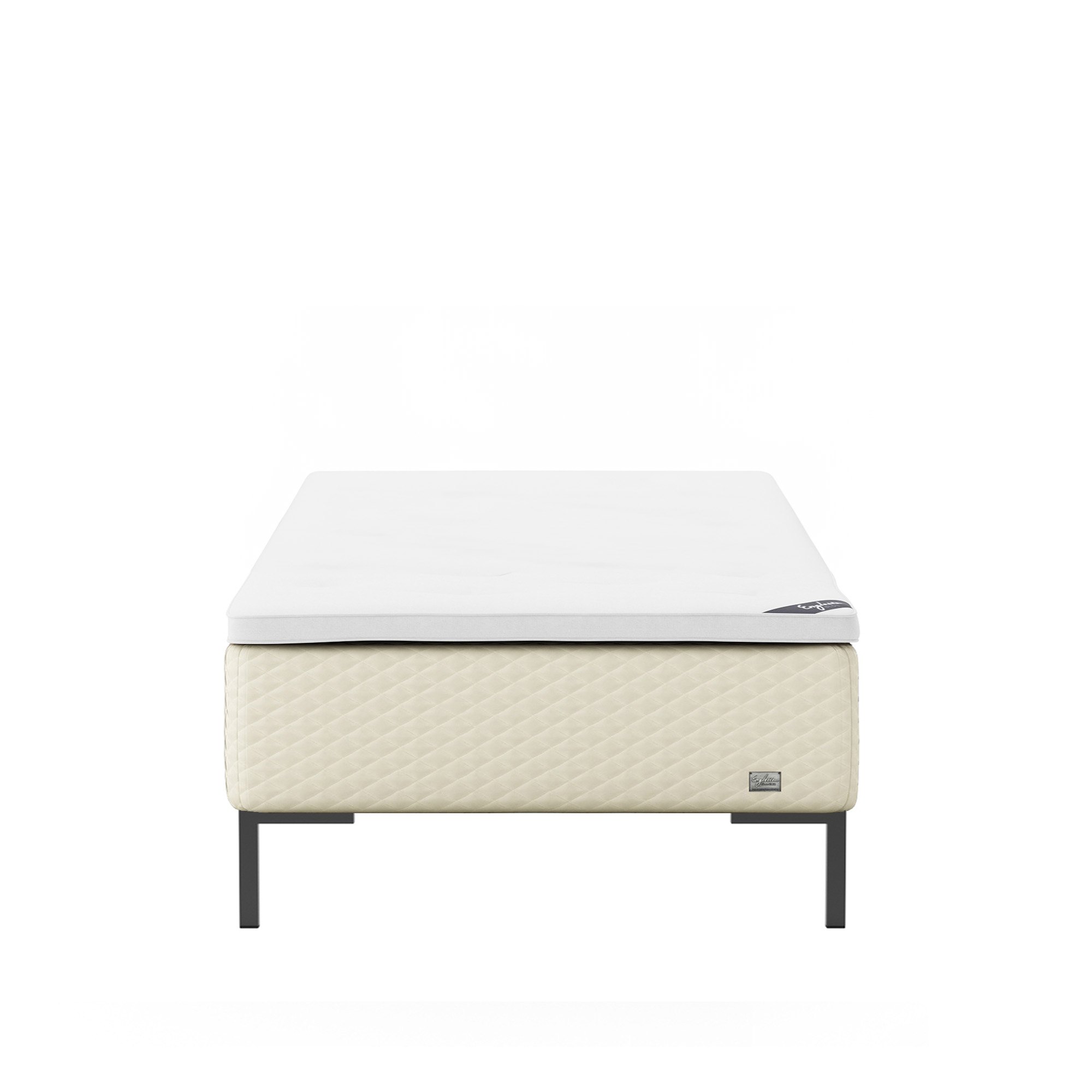 Englesson - Superior Kontinental Low Frame Firm 140Wx210L Pearl Dubbelsäng, Sängben Koniska Trä White 21 cm, Bäddmadrass Sense Plus - Sängar - Beige