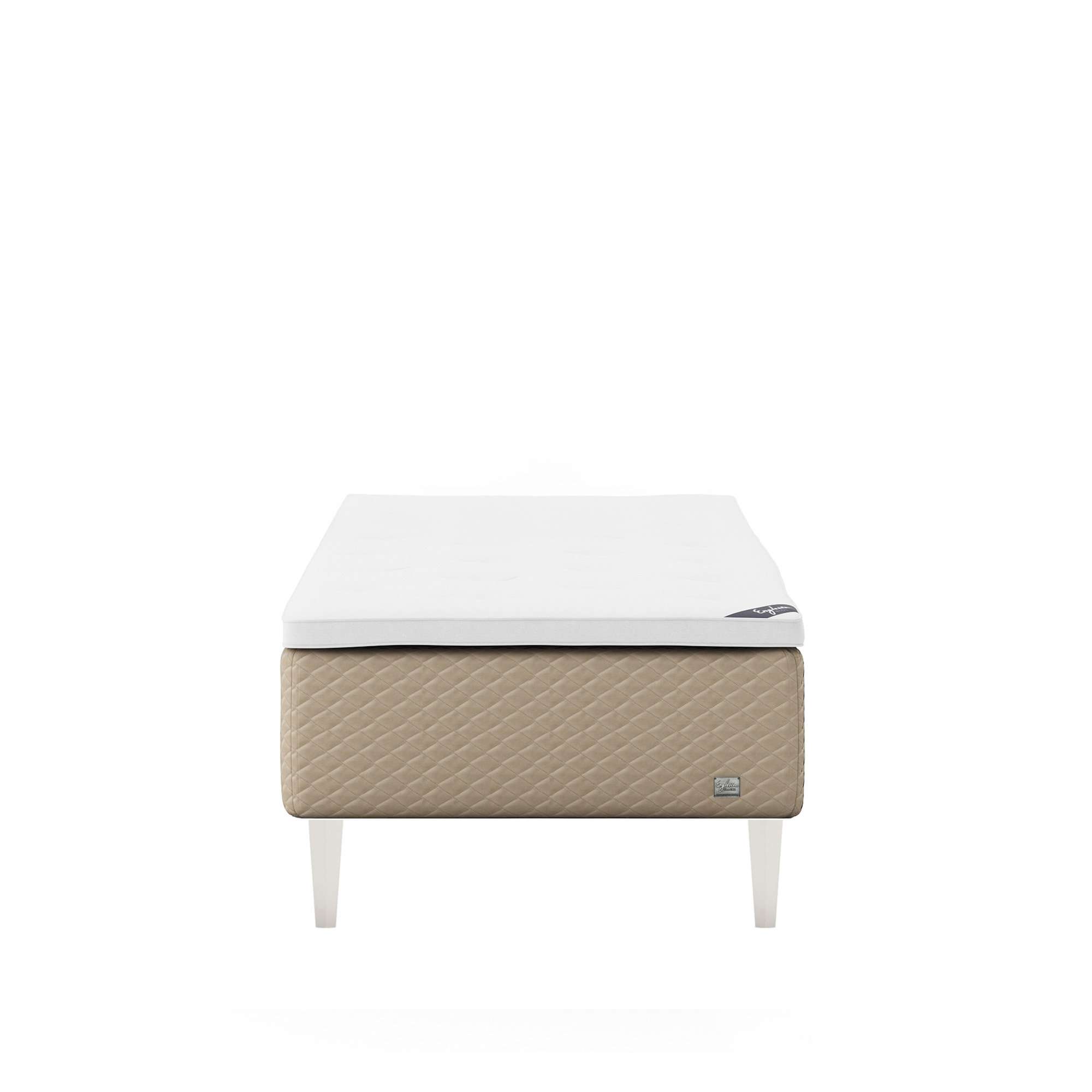 Englesson - Superior Kontinental Low Frame Firm 140Wx210L Pearl Dubbelsäng, Sängben Koniska Trä White 21 cm, Bäddmadrass Sense Plus - Sängar - Beige