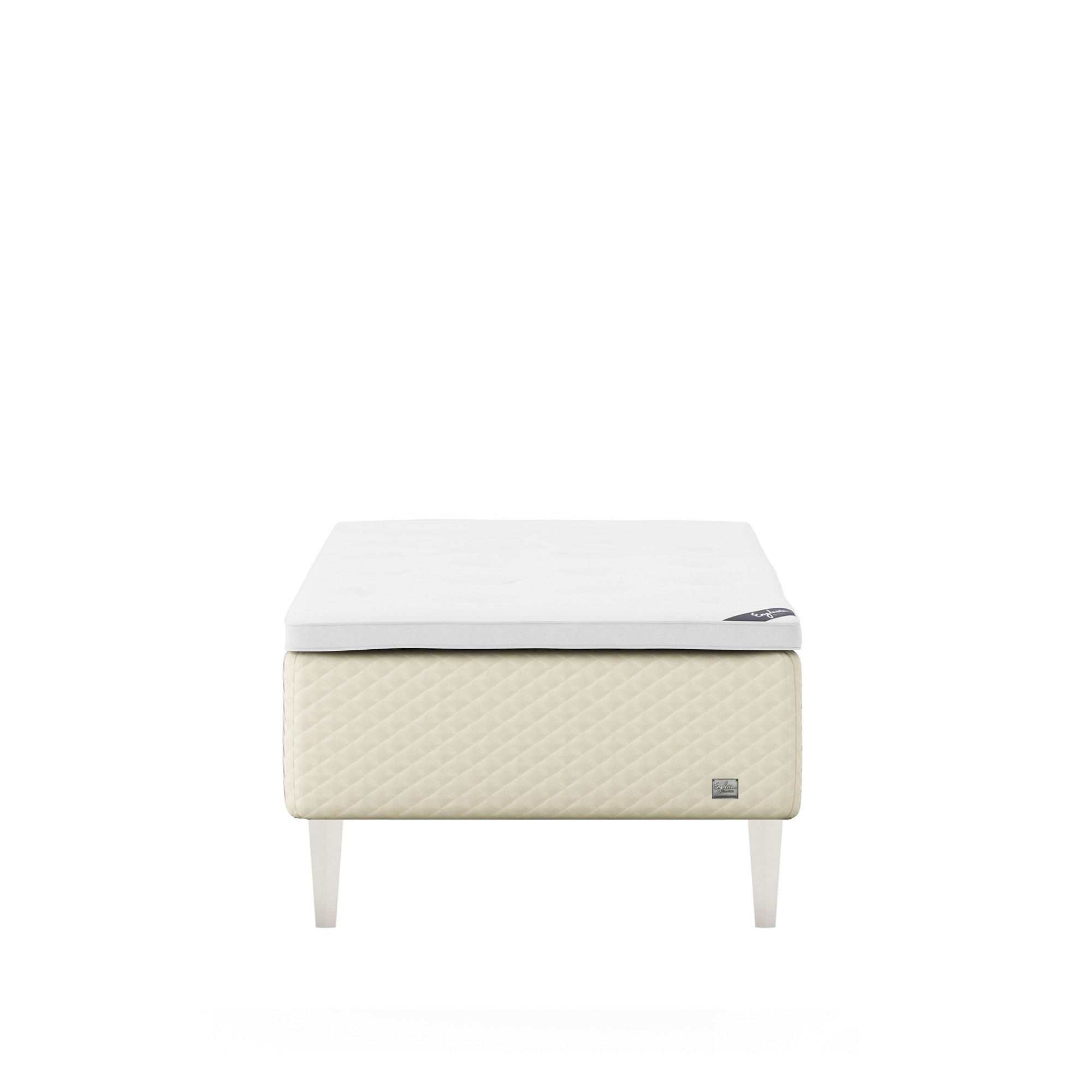 Englesson - Superior Kontinental Low Frame Firm 140Wx210L Pearl Dubbelsäng, Sängben Koniska Trä White 21 cm, Bäddmadrass Sense Plus - Sängar - Beige
