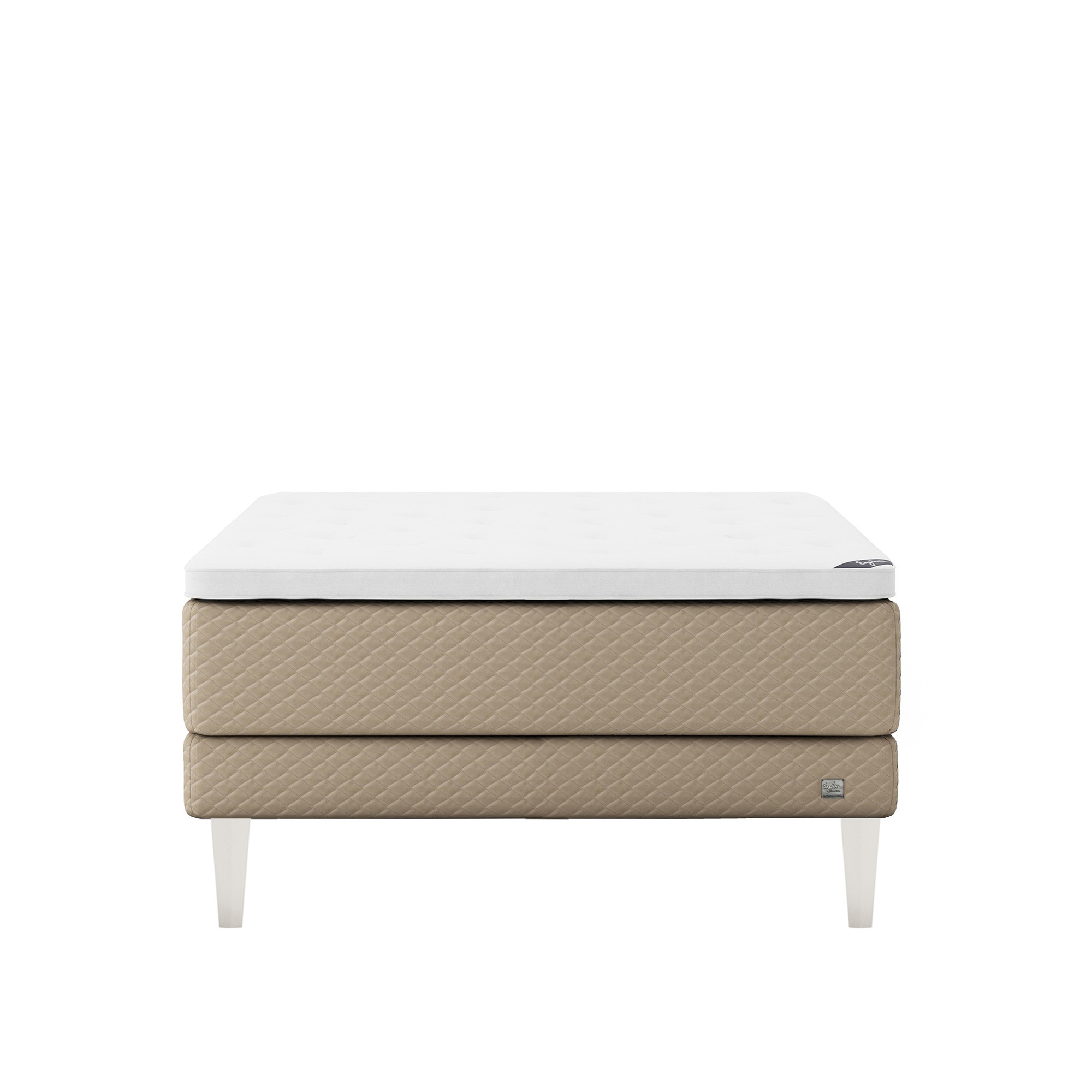 Englesson - Superior Kontinental Low Frame Firm 180Wx200L Pearl Dubbelsäng, Sängben Koniska Trä White 21 cm, Bäddmadrass Sense Plus - Sängar - Beige