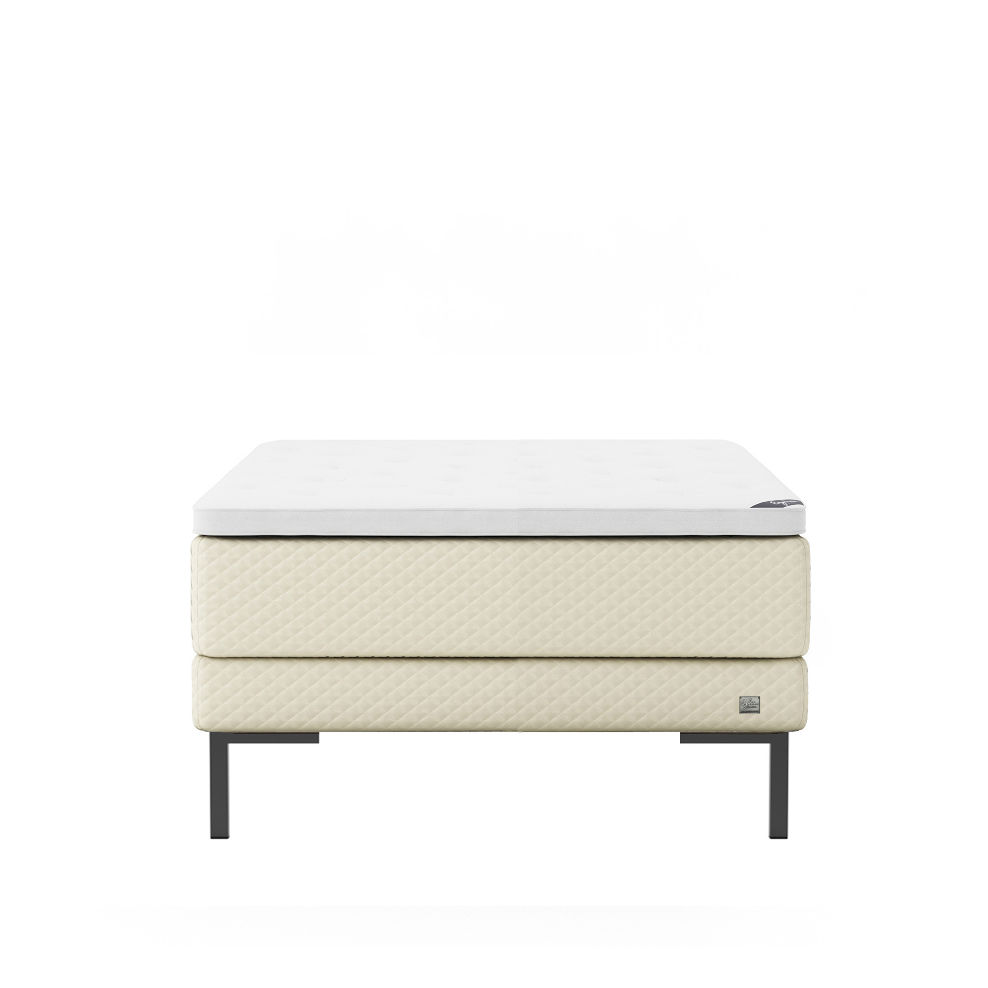 Englesson - Superior Kontinental Low Frame Firm 160Wx210L Pearl Dubbelsäng, Sängben Koniska Trä White 21 cm, Bäddmadrass Sense Plus - Sängar - Beige