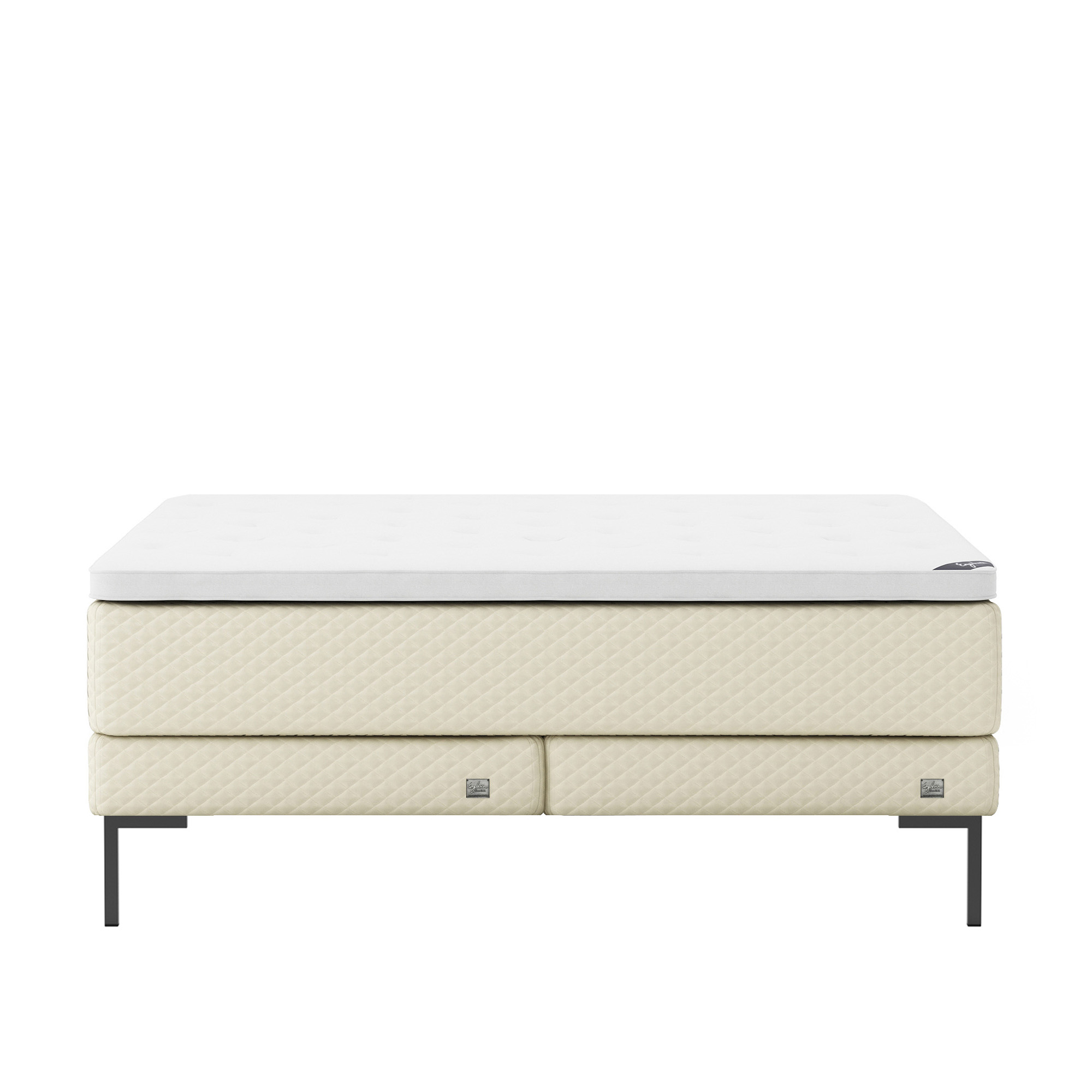 Englesson - Superior Kontinental Low Frame Firm 180Wx200L Pearl Dubbelsäng, Sängben Metall Svarta 19 cm, Bäddmadrass Sense Plus - Sängar - Beige