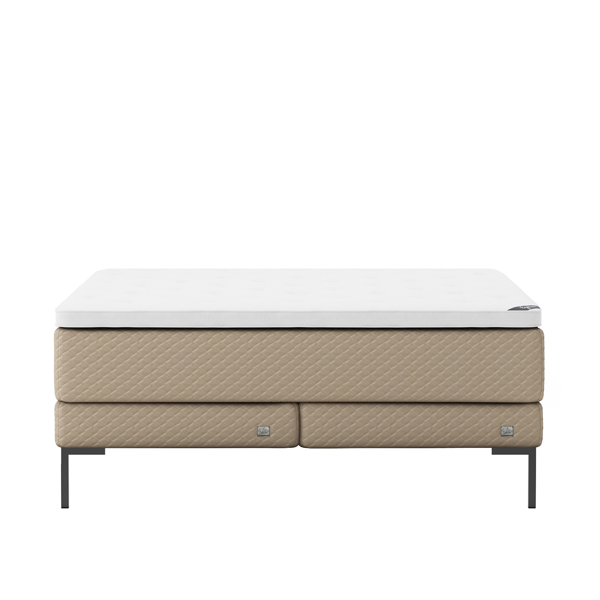 Englesson - Superior Kontinental Low Frame Firm 140Wx210L Pearl Dubbelsäng, Sängben Metall Svarta 19 cm, Bäddmadrass Sense Plus - Sängar - Beige