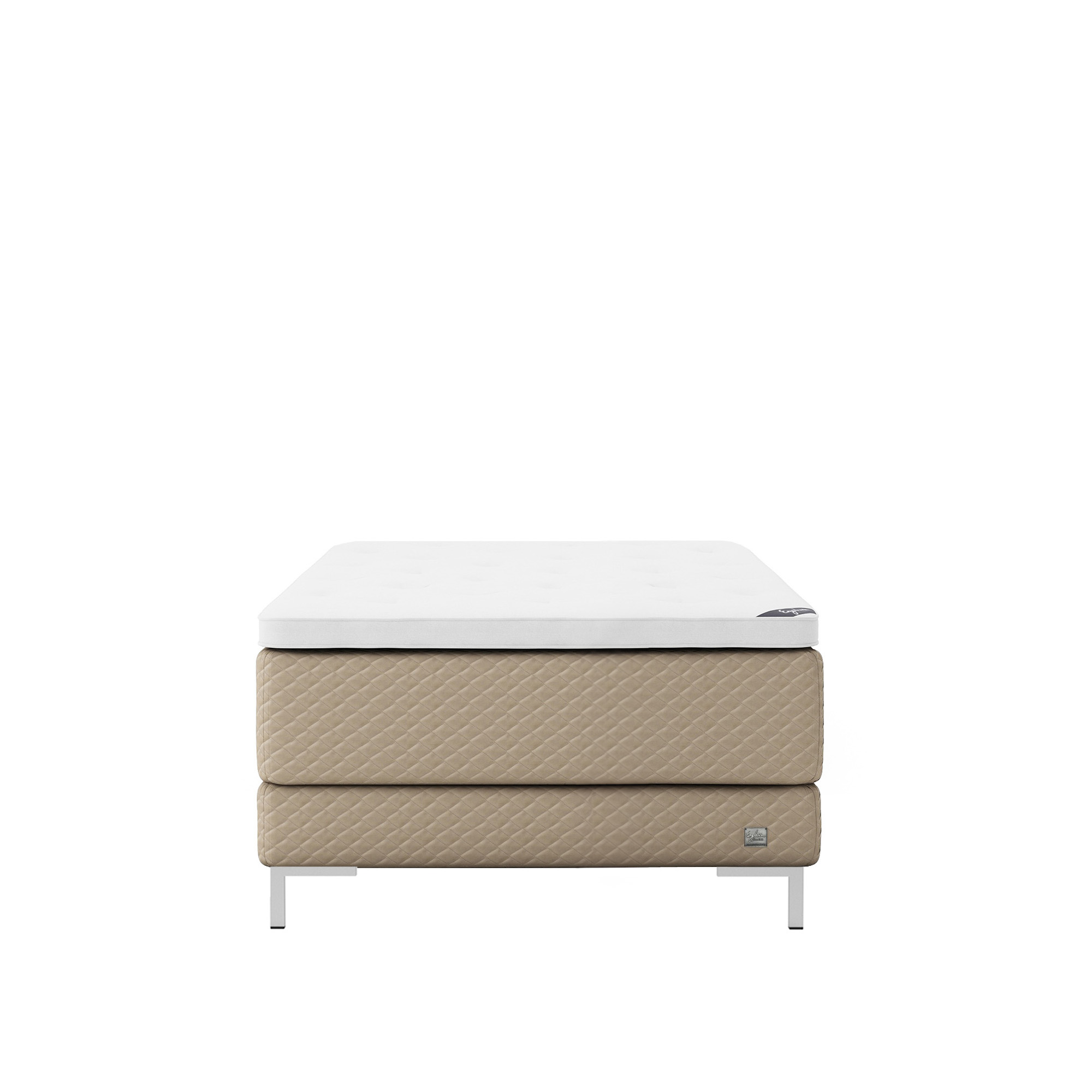 Englesson - Superior Kontinental Low Frame Firm 160Wx210L Pearl Dubbelsäng, Sängben Borstad Aluminium 12 cm, Bäddmadrass Sense Plus - Sängar - Beige