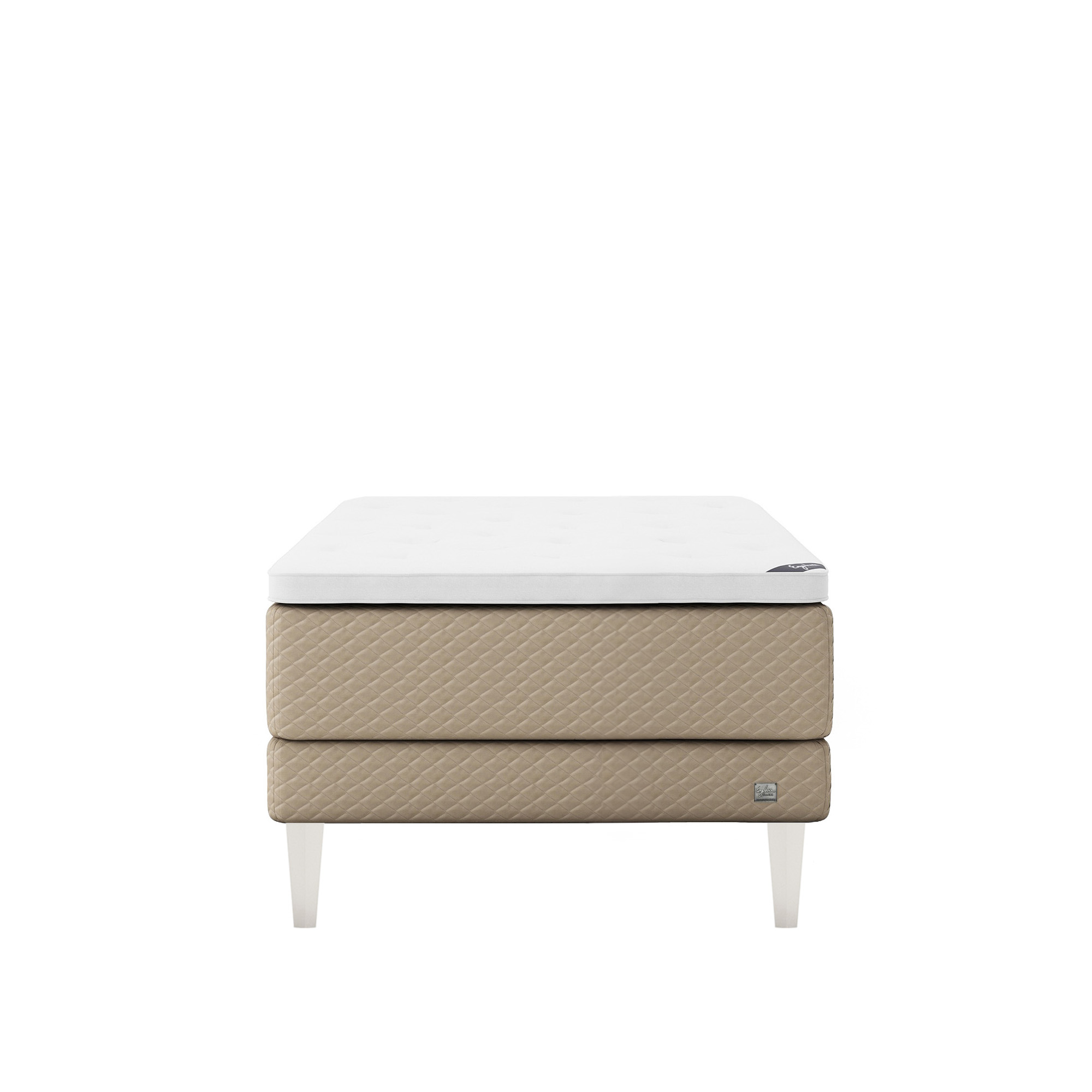 Englesson - Superior Kontinental Low Frame Firm 140Wx210L Pearl Dubbelsäng, Sängben Koniska Trä White 21 cm, Bäddmadrass Sense Plus - Sängar - Beige