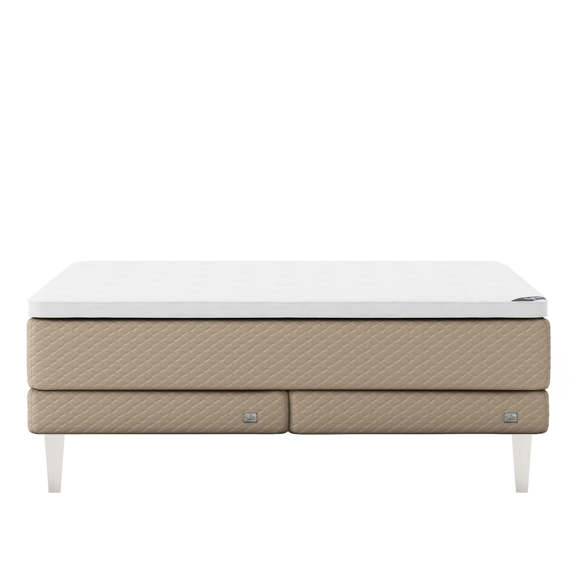 Englesson - Impression Kontinental Low Frame Medium/Firm 210Wx210L Almond Dubbelsäng, Sängben Koniska Trä White 21 cm, Bäddmadrass Superior - Sängar - Brun
