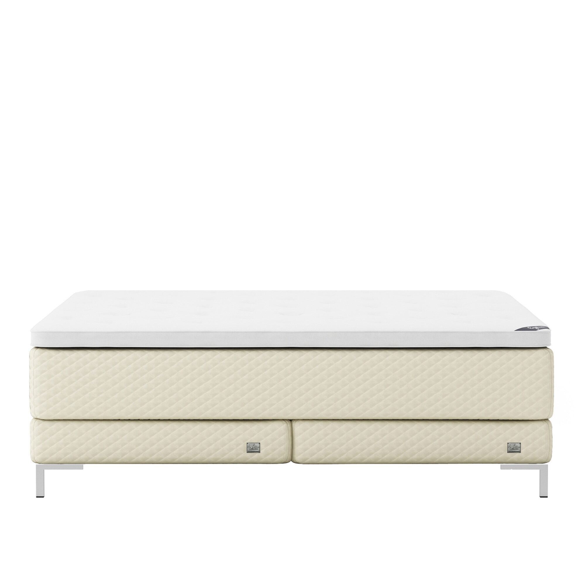 Englesson - Superior Kontinental Low Frame Firm 180Wx200L Pearl Dubbelsäng, Sängben Metall Svarta 19 cm, Bäddmadrass Sense Plus - Sängar - Beige