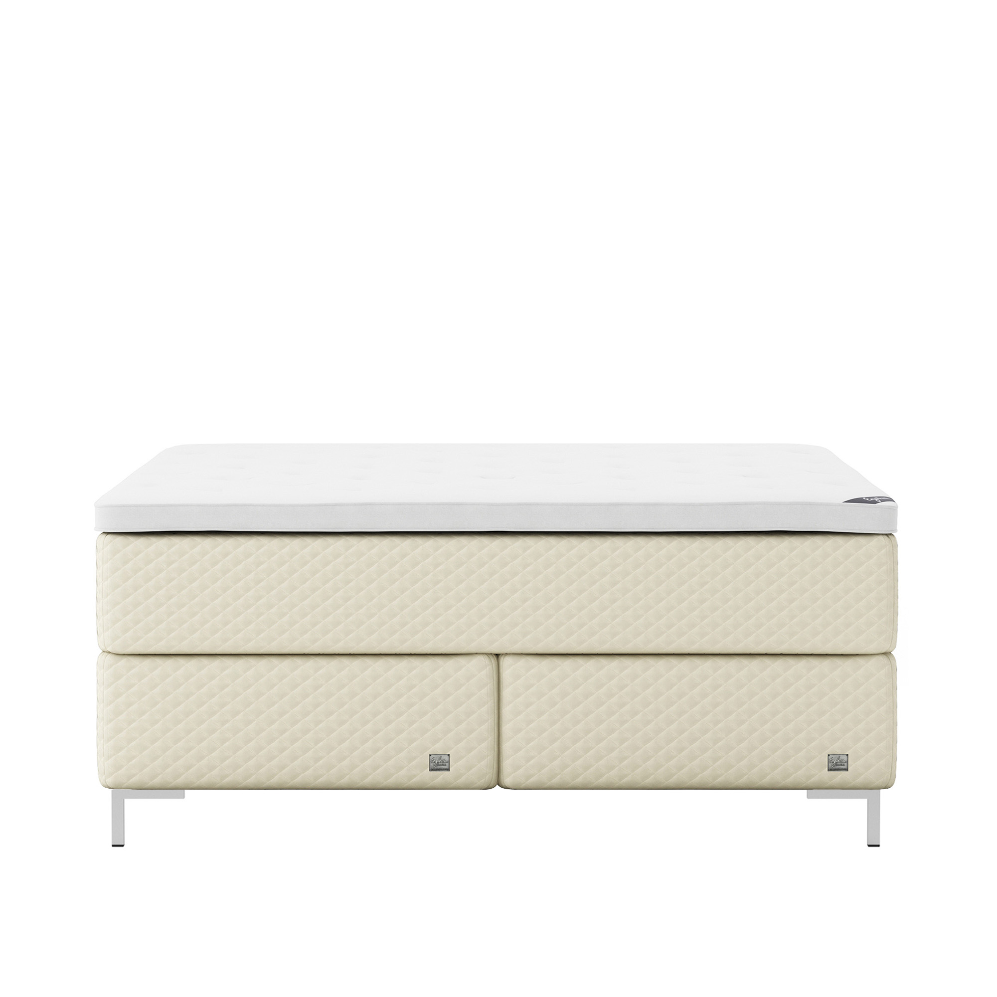 Englesson - Superior Kontinental Low Frame Firm 160Wx210L Pearl Dubbelsäng, Sängben Koniska Trä White 21 cm, Bäddmadrass Sense Plus - Sängar - Beige