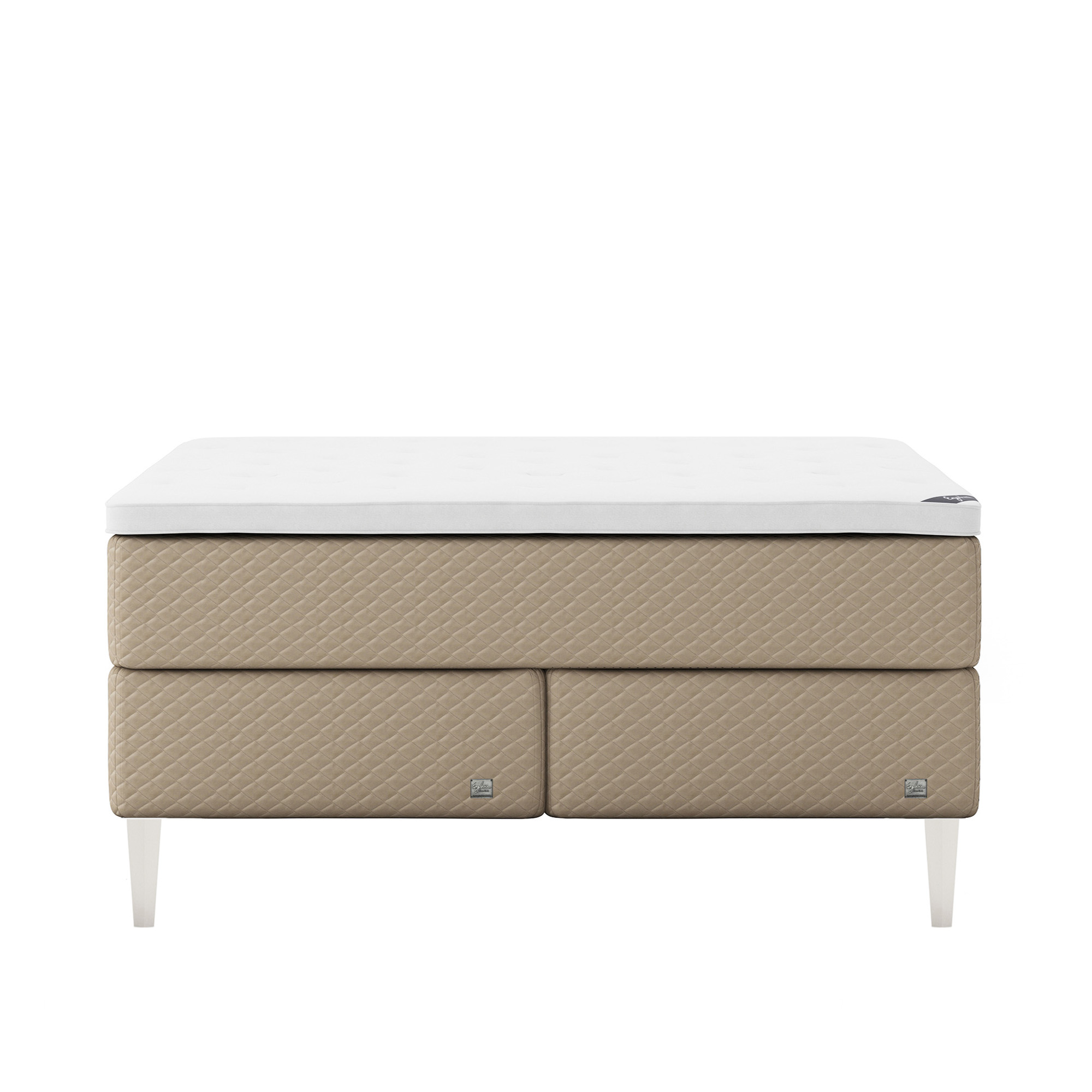 Englesson - Superior Kontinental Low Frame Firm 140Wx210L Pearl Dubbelsäng, Sängben Koniska Trä White 21 cm, Bäddmadrass Sense Plus - Sängar - Beige