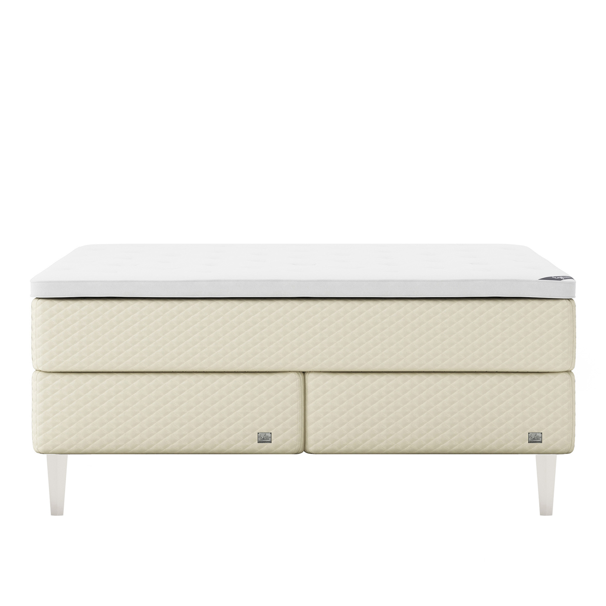 Englesson - Superior Kontinental Low Frame Firm 180Wx200L Pearl Dubbelsäng, Sängben Koniska Trä White 21 cm, Bäddmadrass Sense Plus - Sängar - Beige