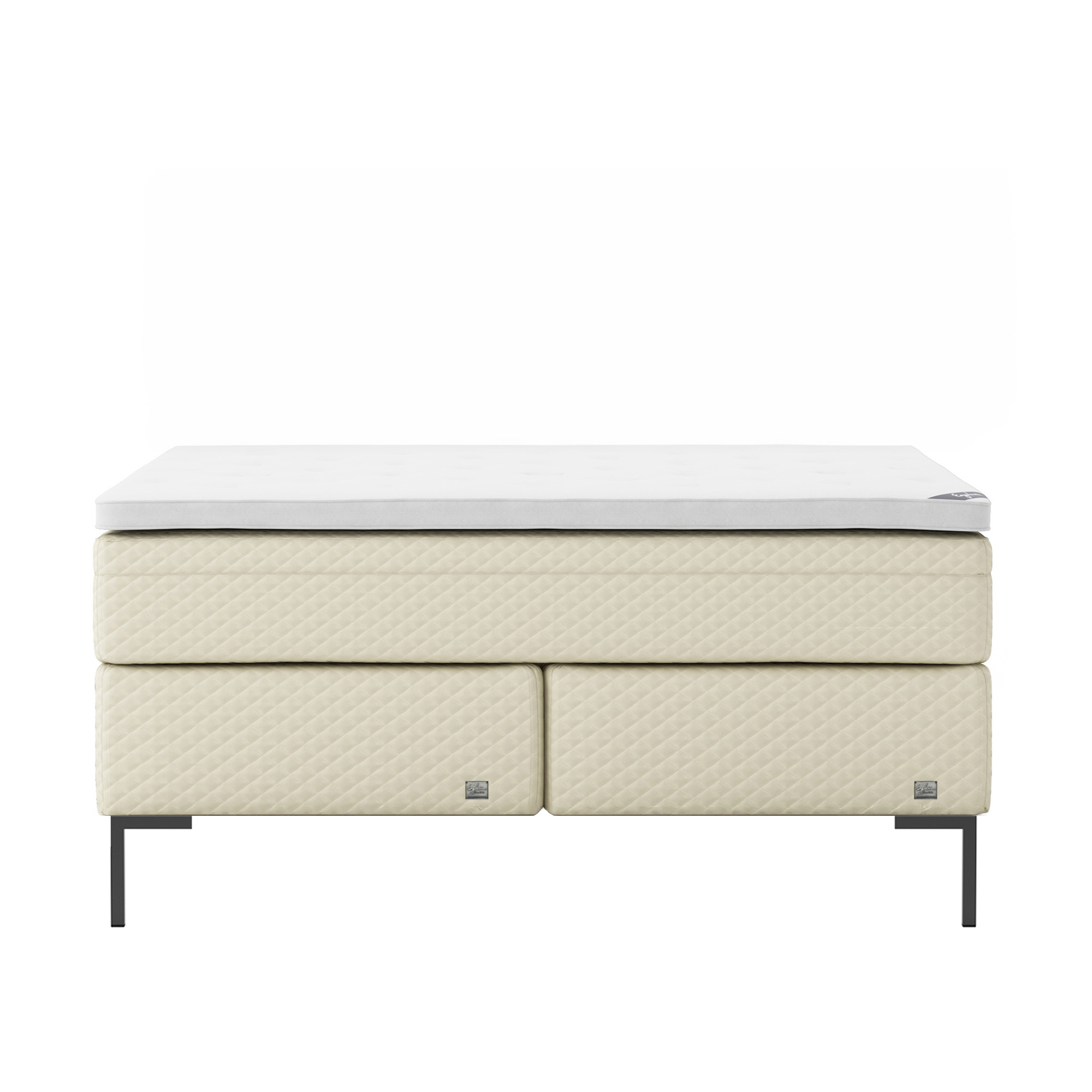 Englesson - Superior Kontinental Low Frame Firm 180Wx200L Pearl Dubbelsäng, Sängben Metall Svarta 19 cm, Bäddmadrass Sense Plus - Sängar - Beige