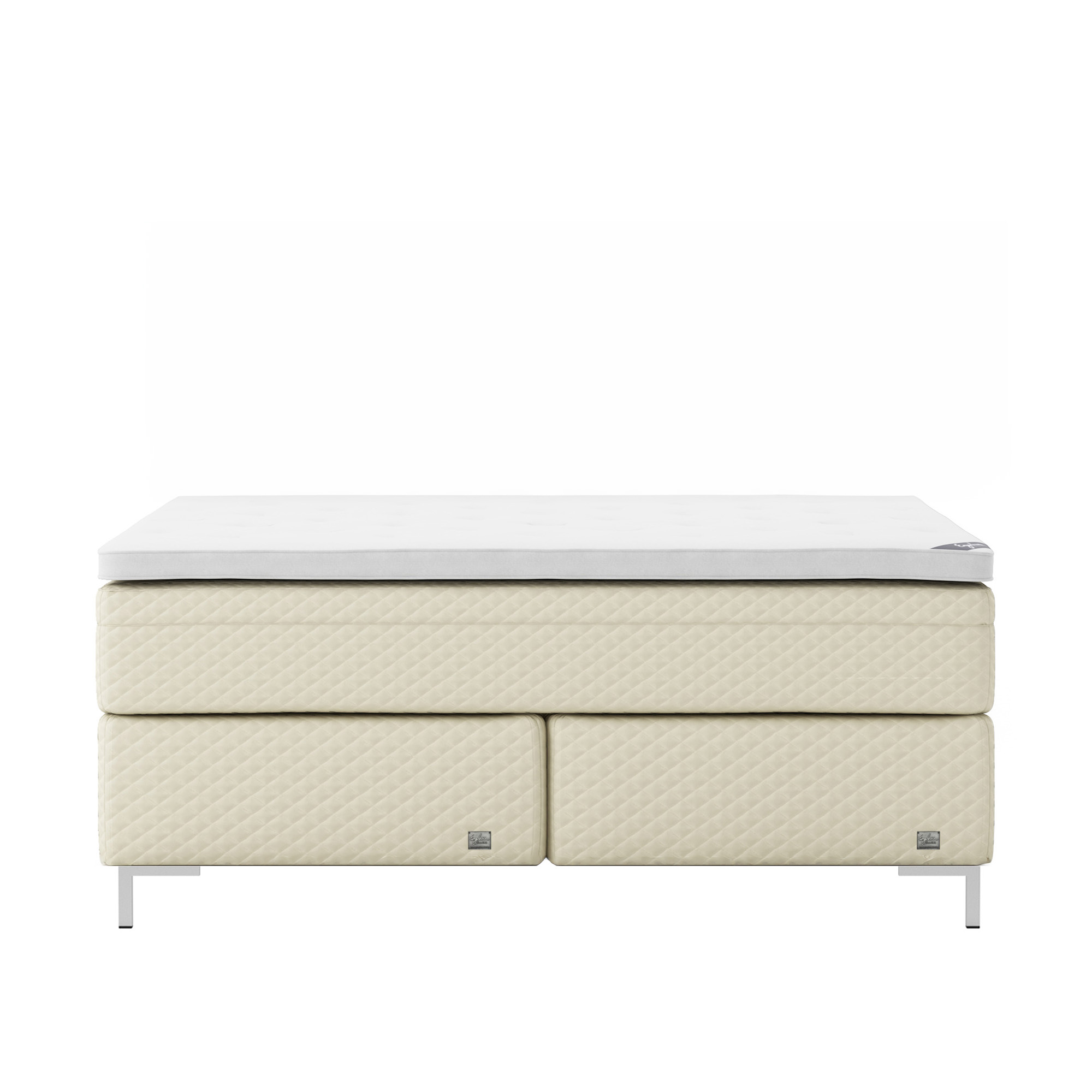 Englesson - Superior Kontinental Low Frame Firm 160Wx210L Pearl Dubbelsäng, Sängben Koniska Trä White 21 cm, Bäddmadrass Sense Plus - Sängar - Beige