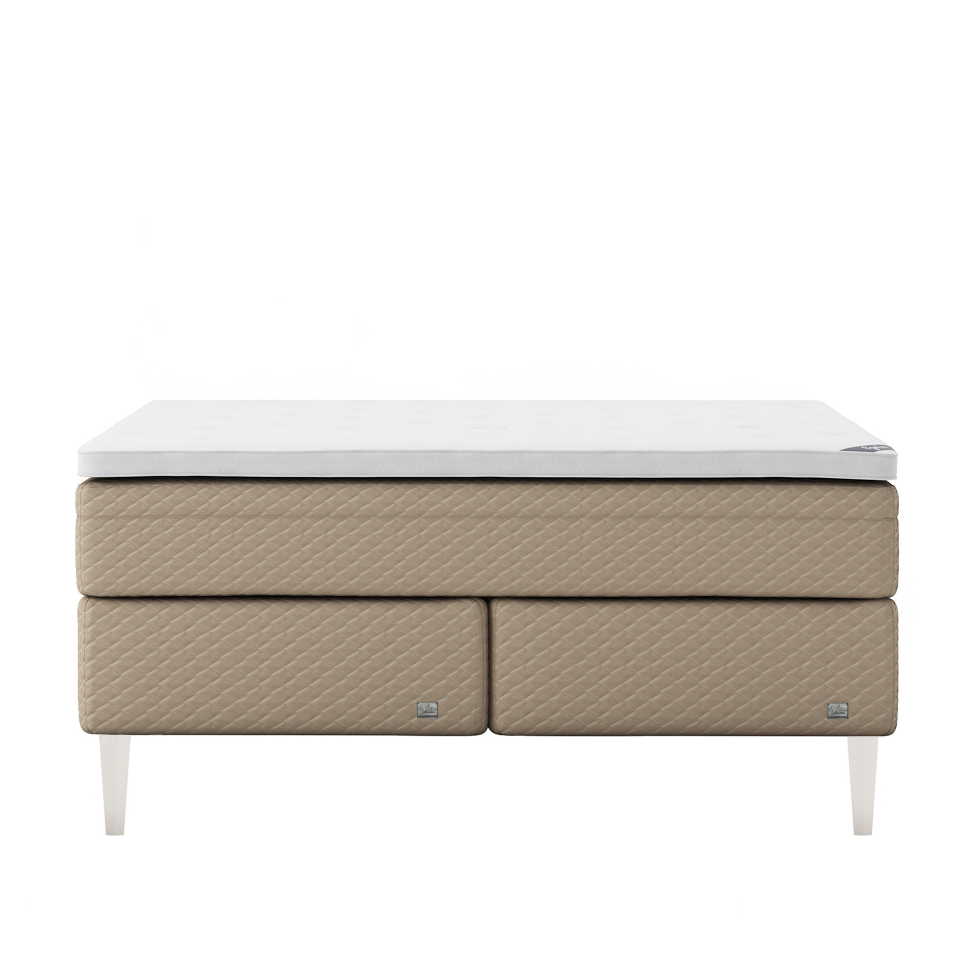 Englesson - Superior Kontinental Low Frame Firm 140Wx210L Pearl Dubbelsäng, Sängben Koniska Trä White 21 cm, Bäddmadrass Sense Plus - Sängar - Beige