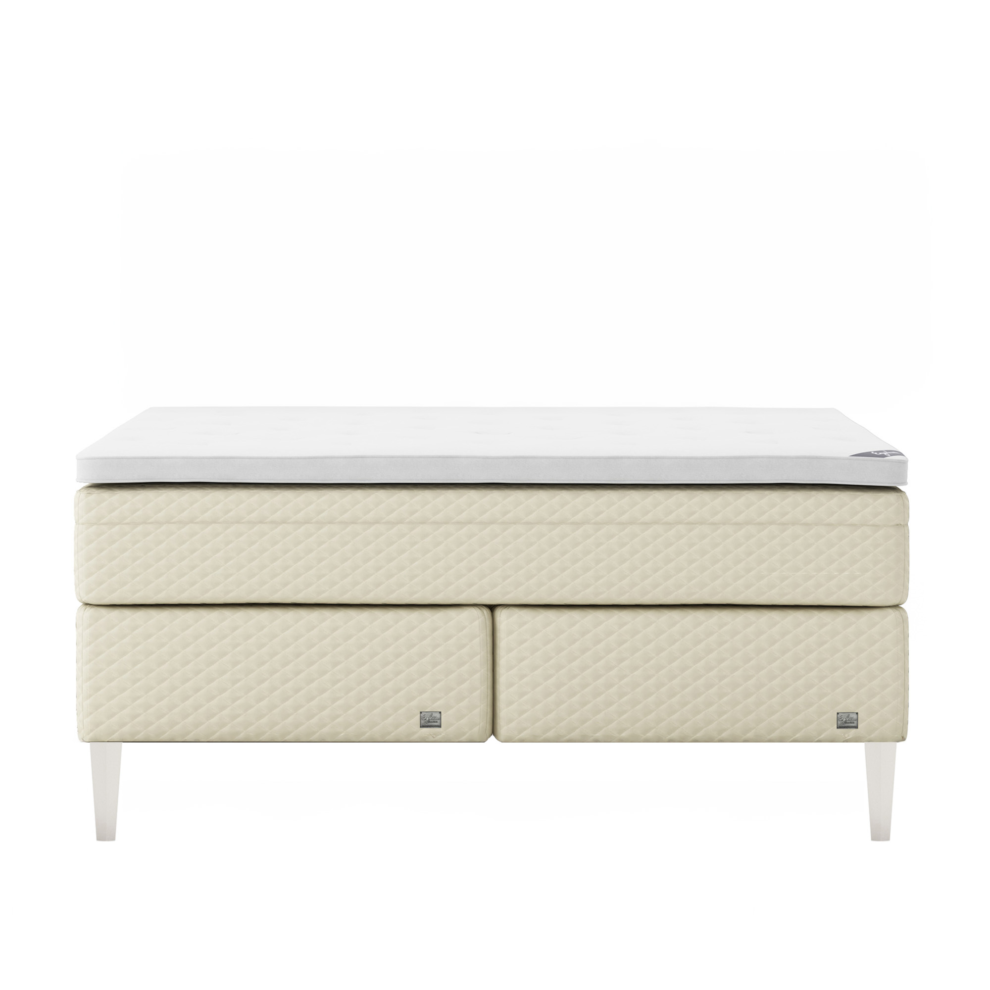 Englesson - Superior Kontinental Low Frame Firm 160Wx210L Pearl Dubbelsäng, Sängben Koniska Trä White 21 cm, Bäddmadrass Sense Plus - Sängar - Beige