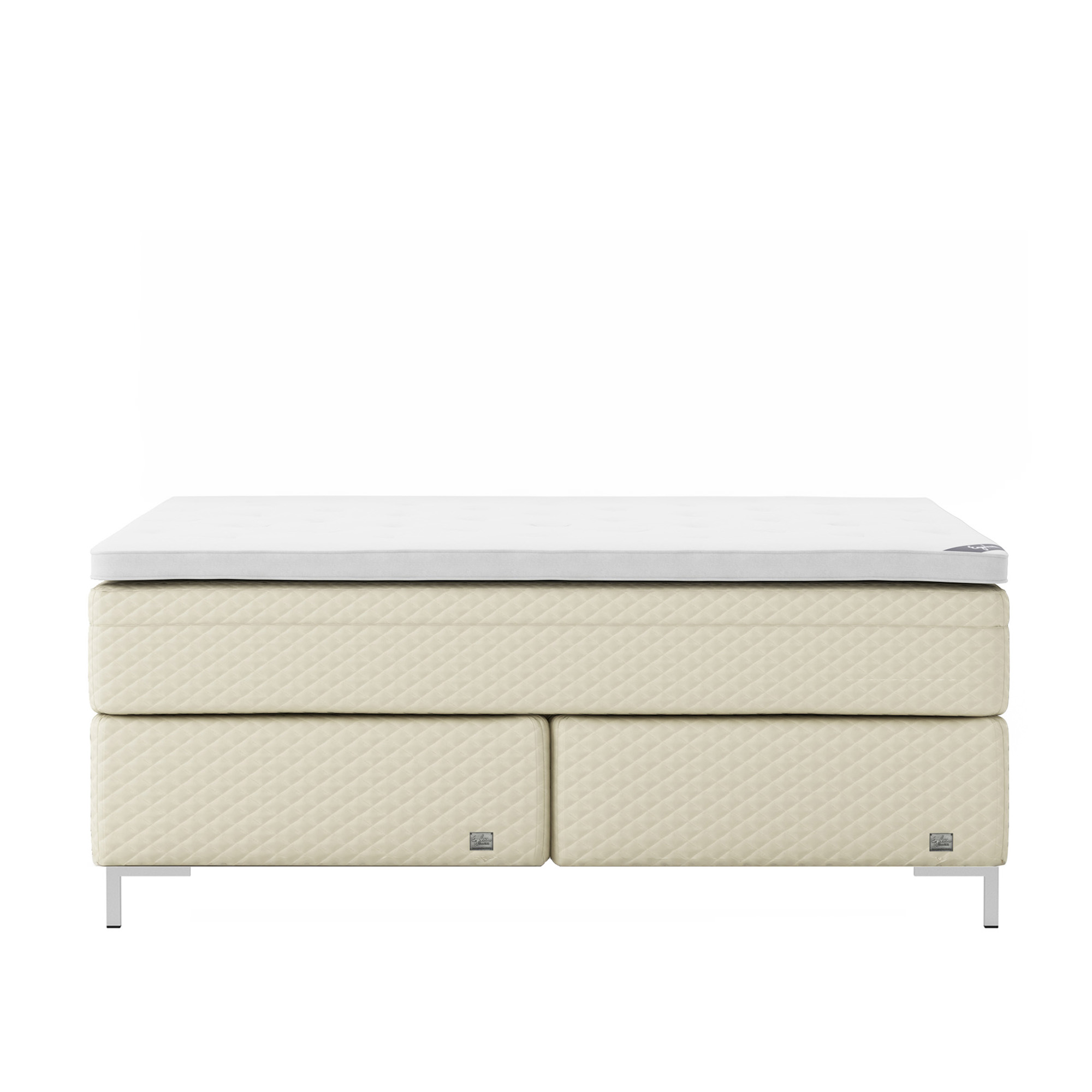 Englesson - Superior Kontinental Low Frame Firm 160Wx210L Pearl Dubbelsäng, Sängben Borstad Aluminium 12 cm, Bäddmadrass Sense Plus - Sängar - Beige