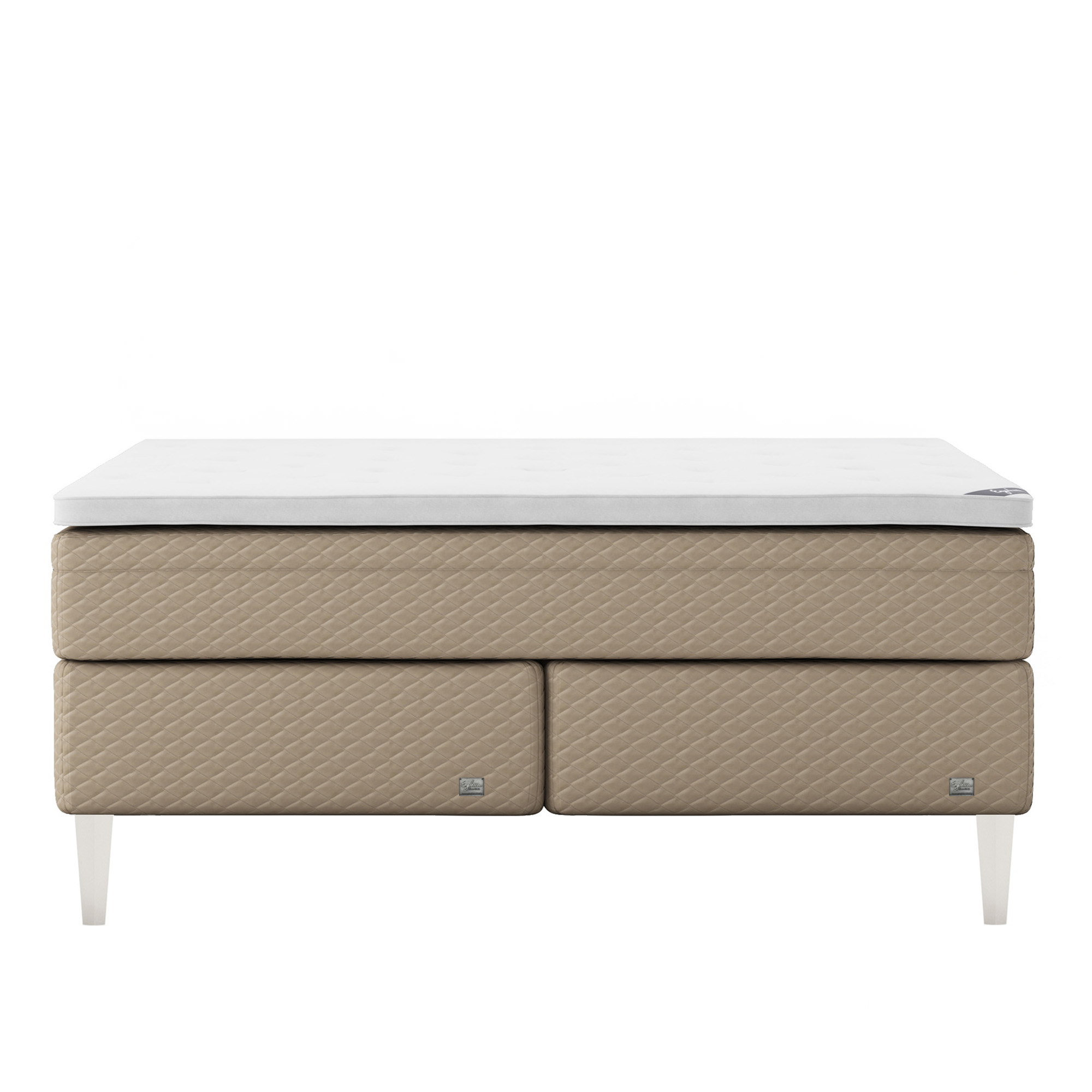 Englesson - Superior Kontinental Low Frame Firm 160Wx200L Pearl Dubbelsäng, Sängben Koniska Trä White 21 cm, Bäddmadrass Sense Plus - Sängar - Beige