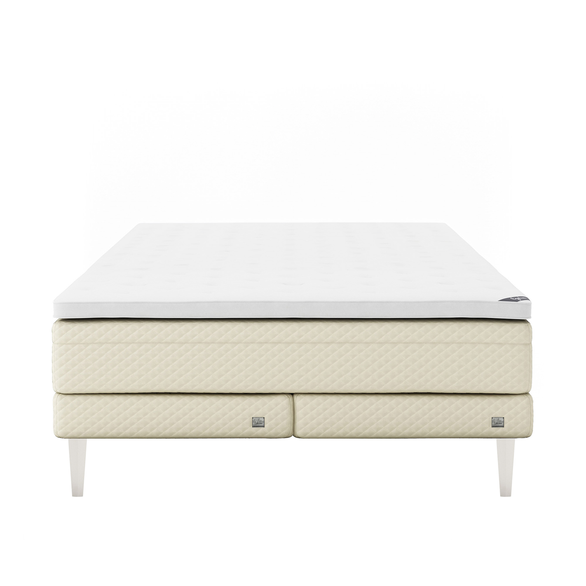 Englesson - Superior Kontinental Low Frame Firm 160Wx210L Pearl Dubbelsäng, Sängben Koniska Trä White 21 cm, Bäddmadrass Sense Plus - Sängar - Beige
