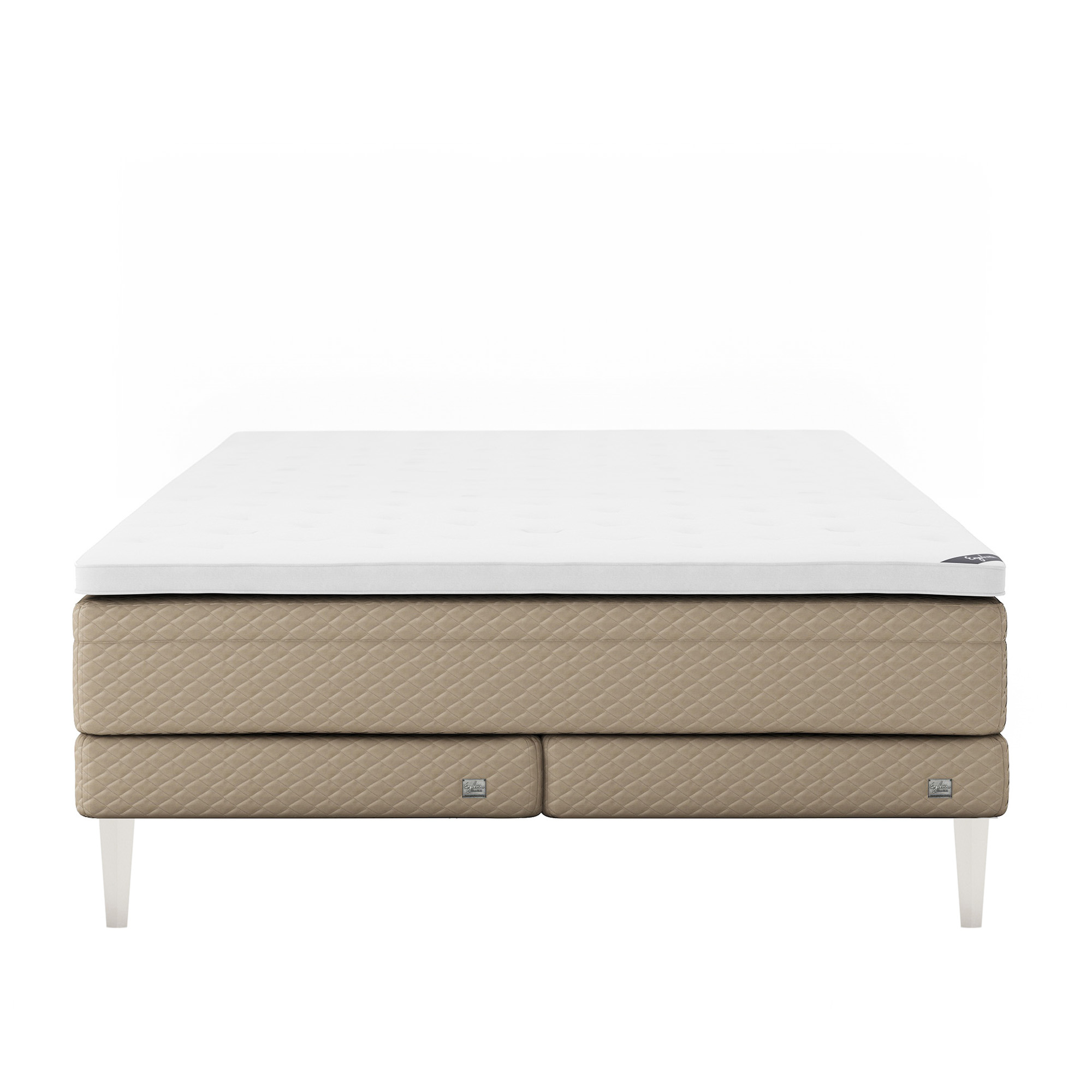 Englesson - Superior Kontinental Low Frame Firm 160Wx210L Pearl Dubbelsäng, Sängben Koniska Trä White 21 cm, Bäddmadrass Sense Plus - Sängar - Beige