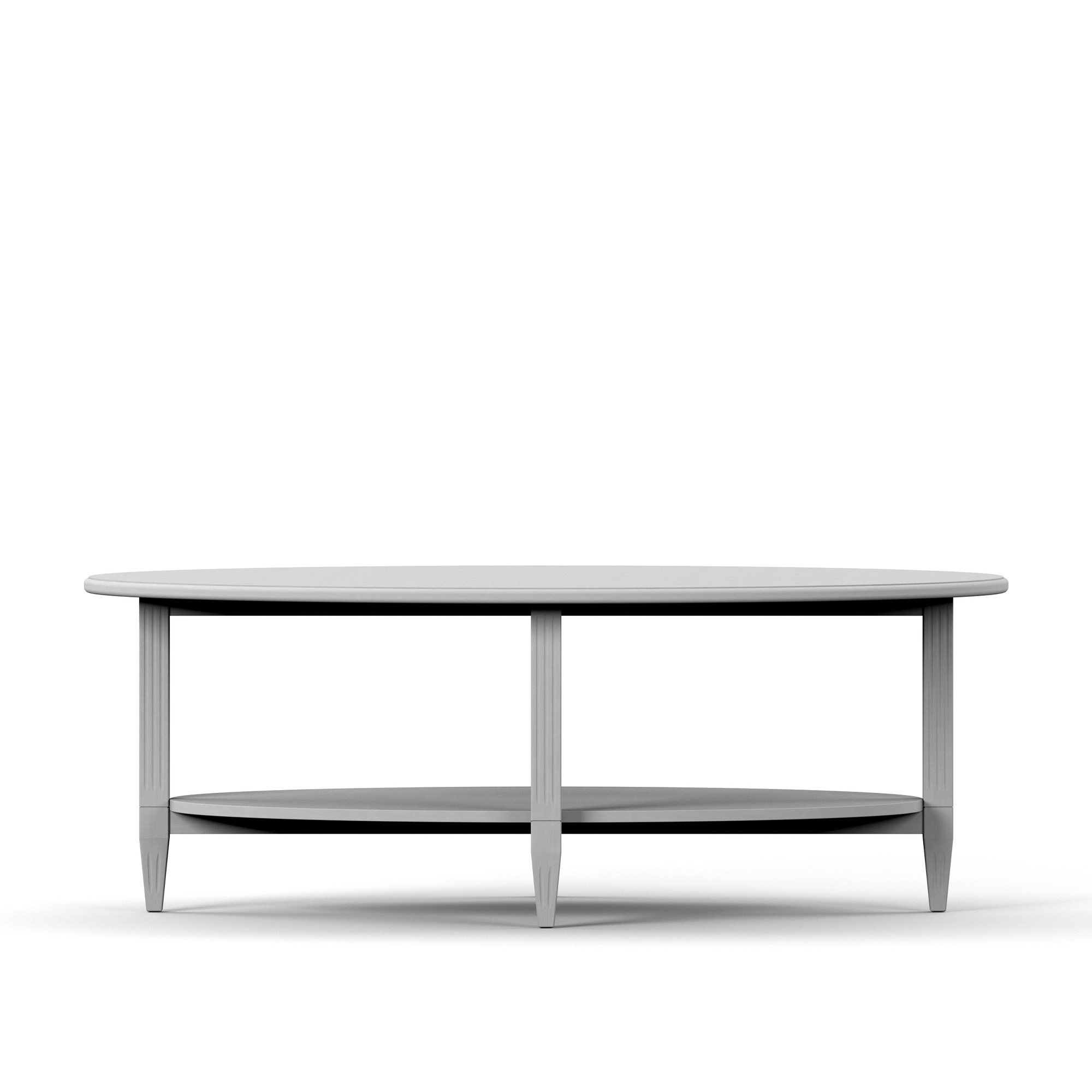 Stockholm är en stilren, klassisk och tidlös serie möbler från Englesson. Formspråket är skandinaviskt och stramt, samtidigt sofistikerat med en känsla av hemtrevlig elegans, och skänker en exklusiv känsla till en rad olika typer av hem och inredningsstilar. Möblerna ur serien är handmålade och dess rena linjer skapar en välavvägd balans mellan det gamla och det nya. Dessa ovala soffbord har ett hyllplan nertill och finns tillgänglig i flera olika utföranden. I kollektionen ingår även ett runt soffbord.