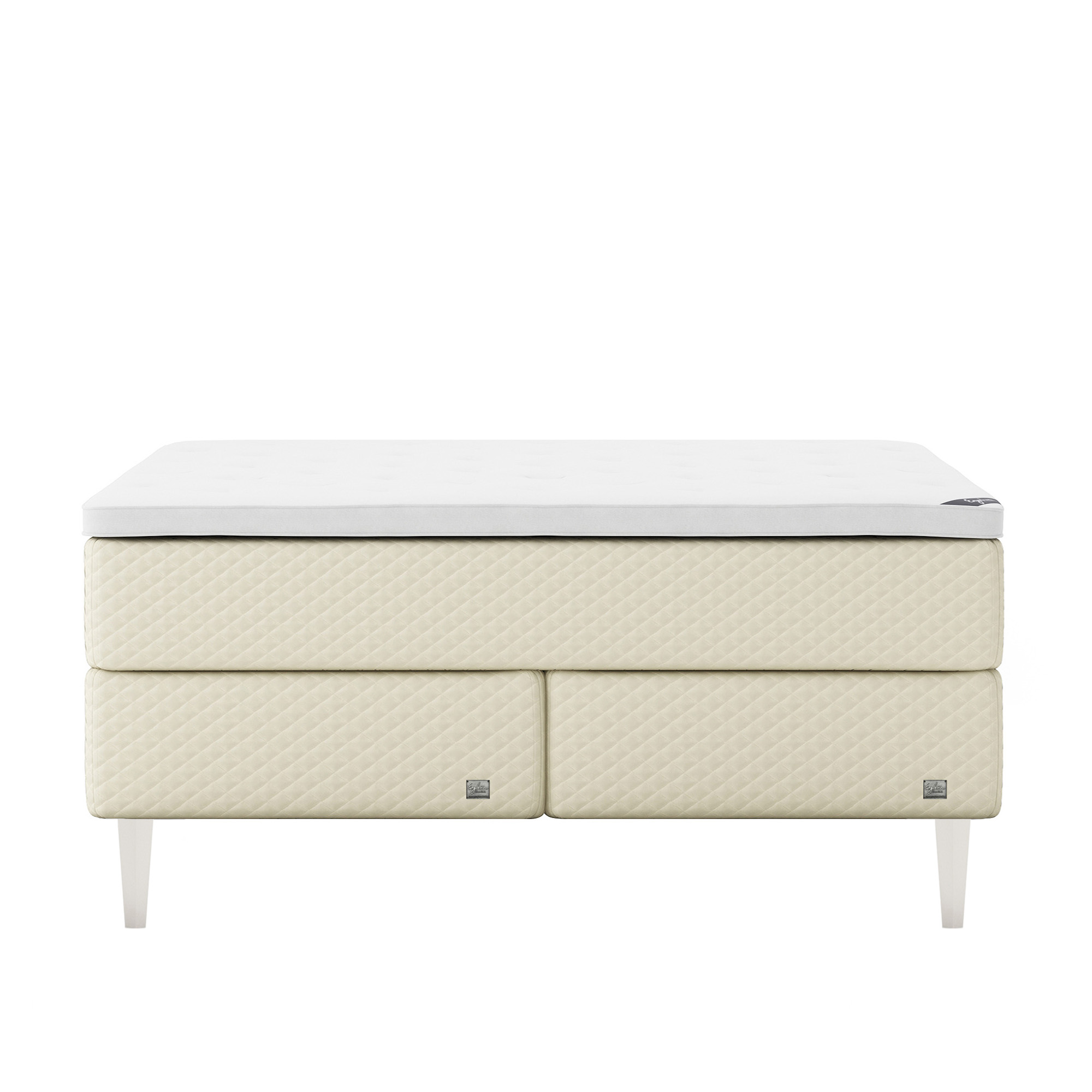 Englesson - Superior Kontinental Firm 180Wx210L Pearl Dubbelsäng, Sängben Koniska Trä White 21 cm, Bäddmadrass Superior - Sängar - Beige