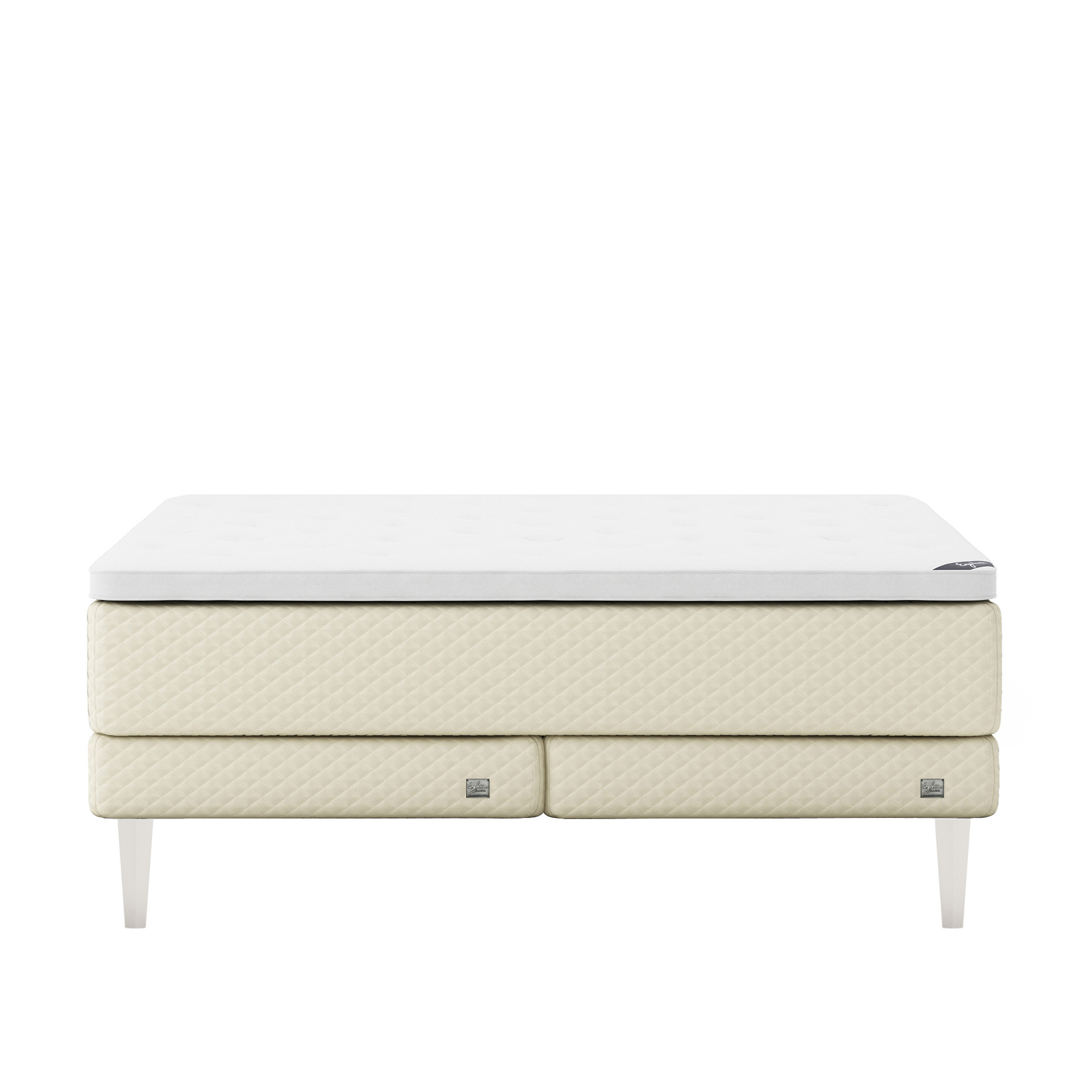 Englesson - Superior Kontinental Low Frame Medium/Firm 180Wx200L Pearl Dubbelsäng, Sängben Koniska Trä White 21 cm, Bäddmadrass Superior - Sängar - Beige