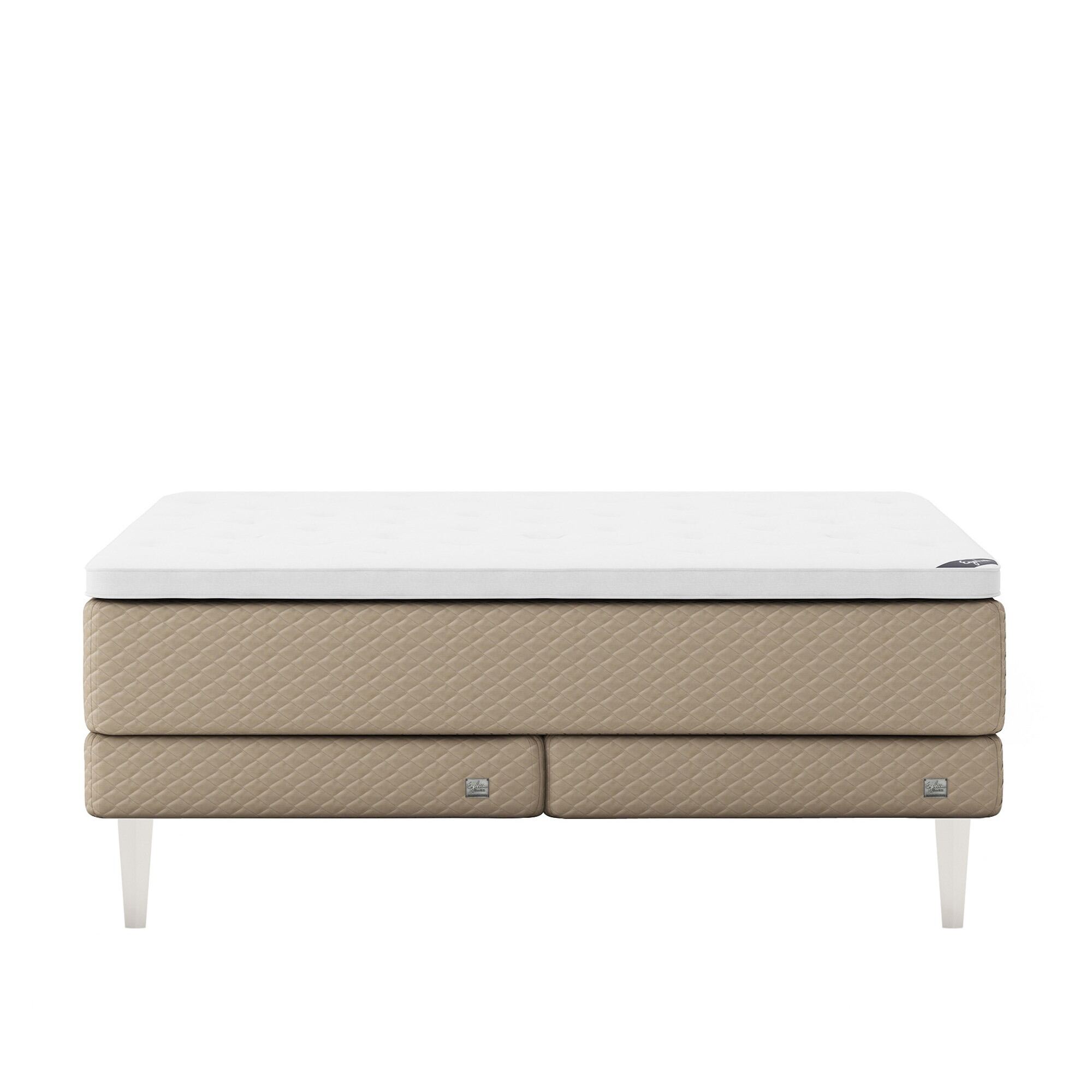 Englesson - Superior Kontinental Low Frame Medium/Firm 180Wx210L Almond Dubbelsäng, Sängben Koniska Trä White 21 cm, Bäddmadrass Superior - Sängar - Brun