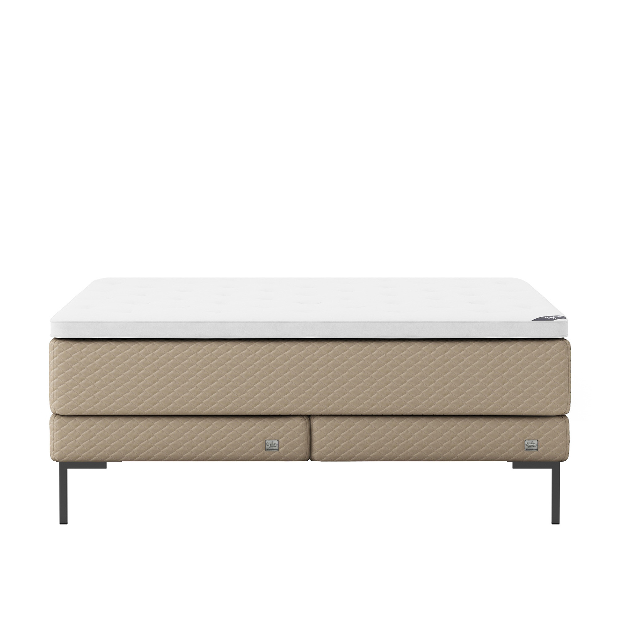 Englesson - Superior Kontinental Low Frame Medium/Firm 180Wx210L Almond Dubbelsäng, Sängben Metall Svarta 19 cm, Bäddmadrass Sense Plus - Sängar - Brun