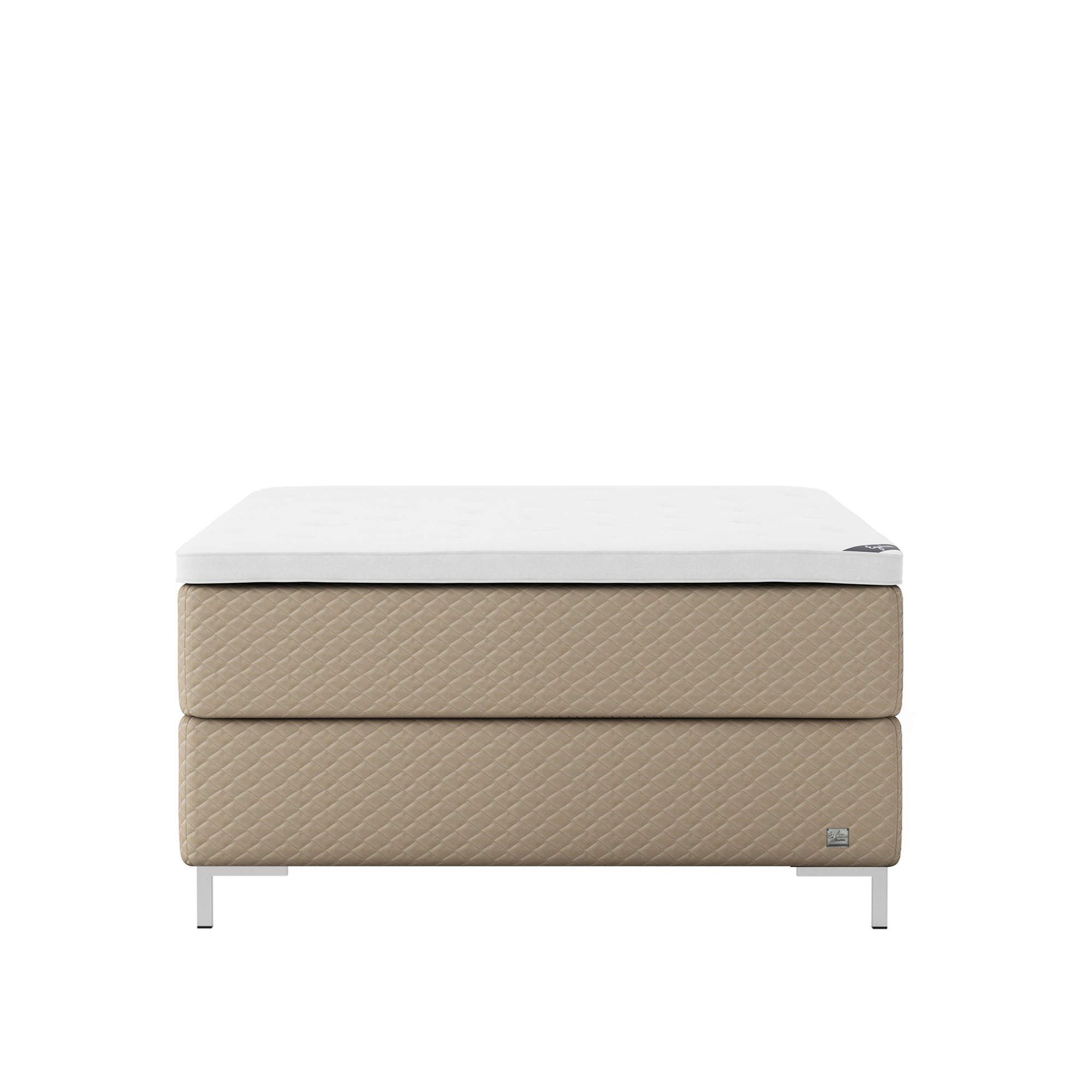 Englesson - Superior Kontinental Medium 140Wx200L Almond Dubbelsäng, Sängben Borstad Aluminium 12 cm, Bäddmadrass Sense Plus - Sängar - Brun