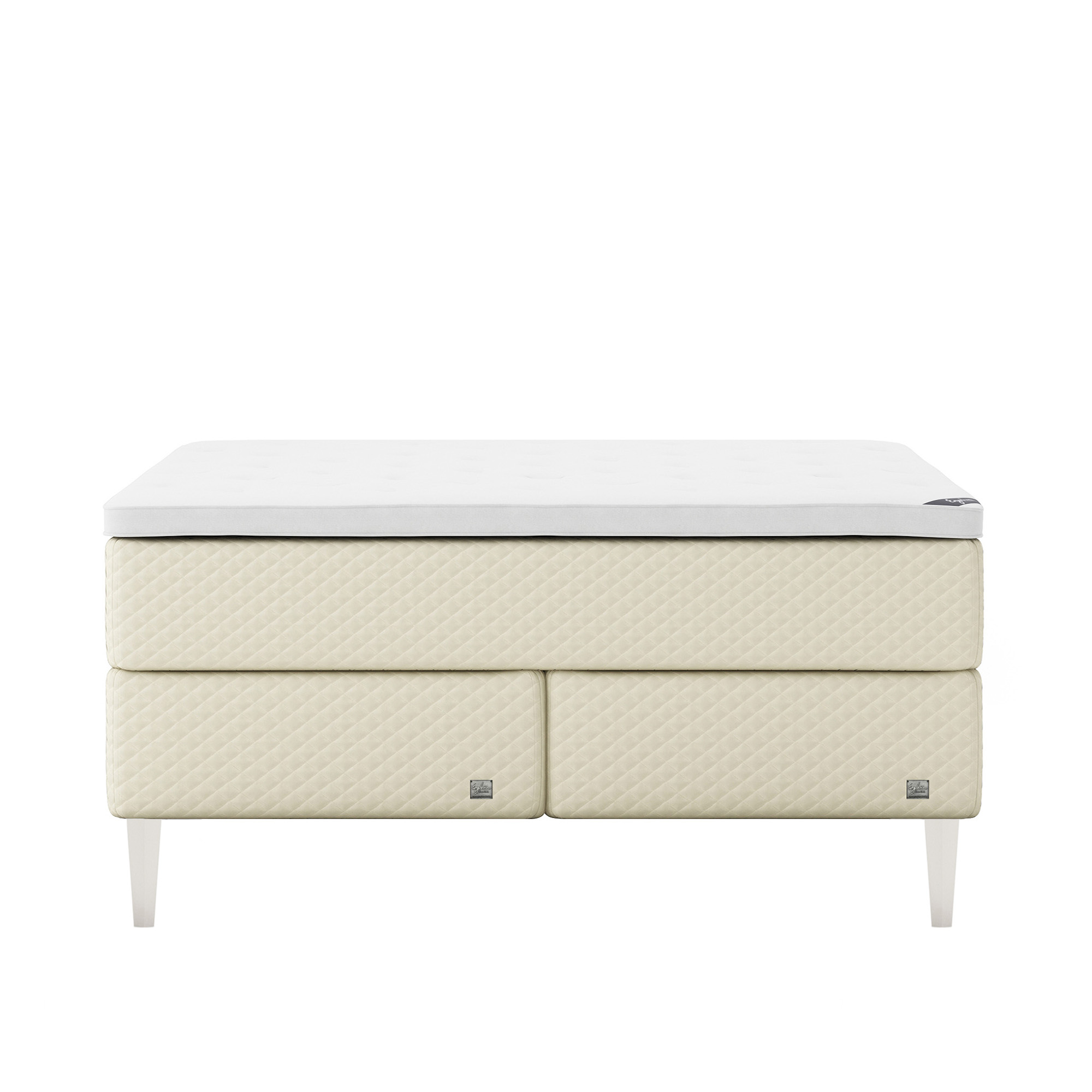 Englesson - Superior Kontinental Medium 160Wx210L Pearl Dubbelsäng, Sängben Koniska Trä White 21 cm, Bäddmadrass Superior - Sängar - Beige