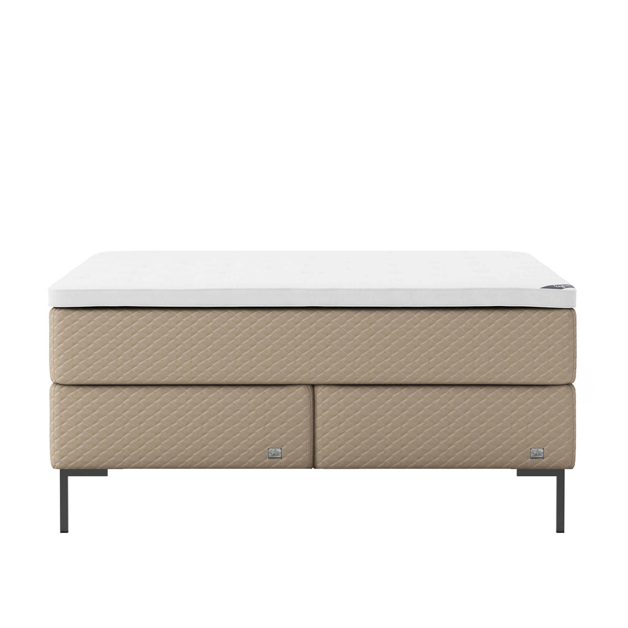 Englesson - Superior Kontinental Low Frame Firm 180Wx200L Pearl Dubbelsäng, Sängben Metall Svarta 19 cm, Bäddmadrass Sense Plus - Sängar - Beige
