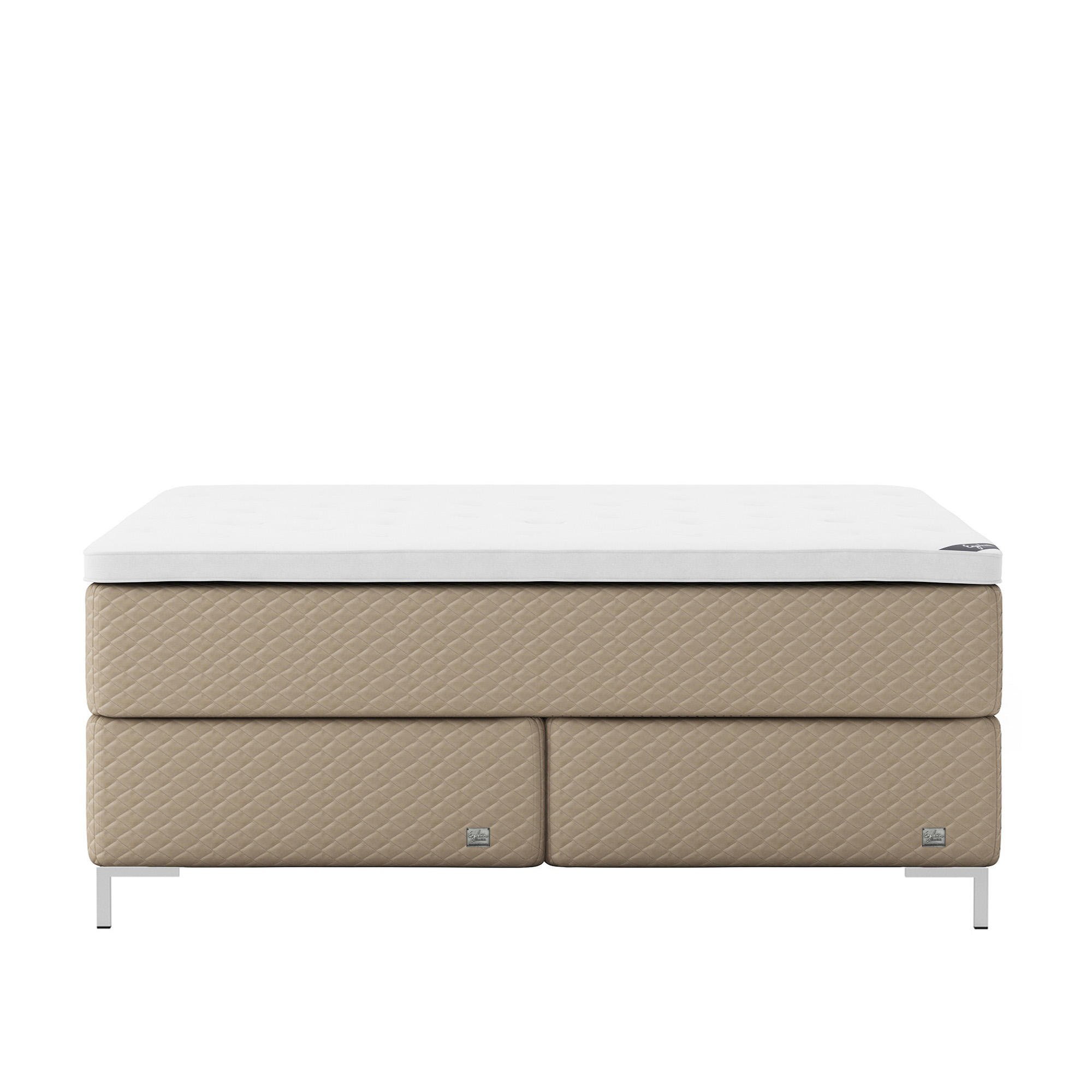Englesson - Superior Kontinental Medium 180Wx210L Almond Dubbelsäng, Sängben Borstad Aluminium 12 cm, Bäddmadrass Sense Plus - Sängar - Brun