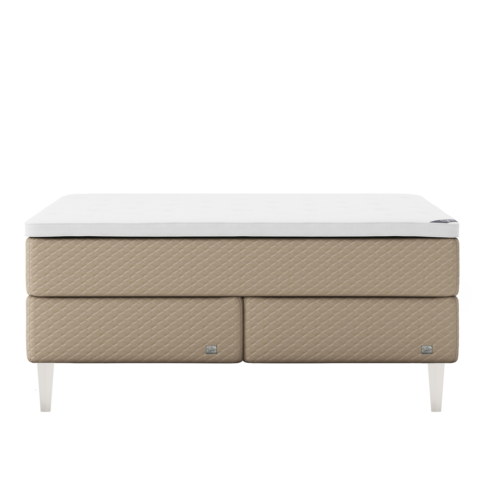 Englesson - Superior Kontinental Medium 210Wx200L Almond Dubbelsäng, Sängben Koniska Trä White 21 cm, Bäddmadrass Sense Plus - Sängar - Brun