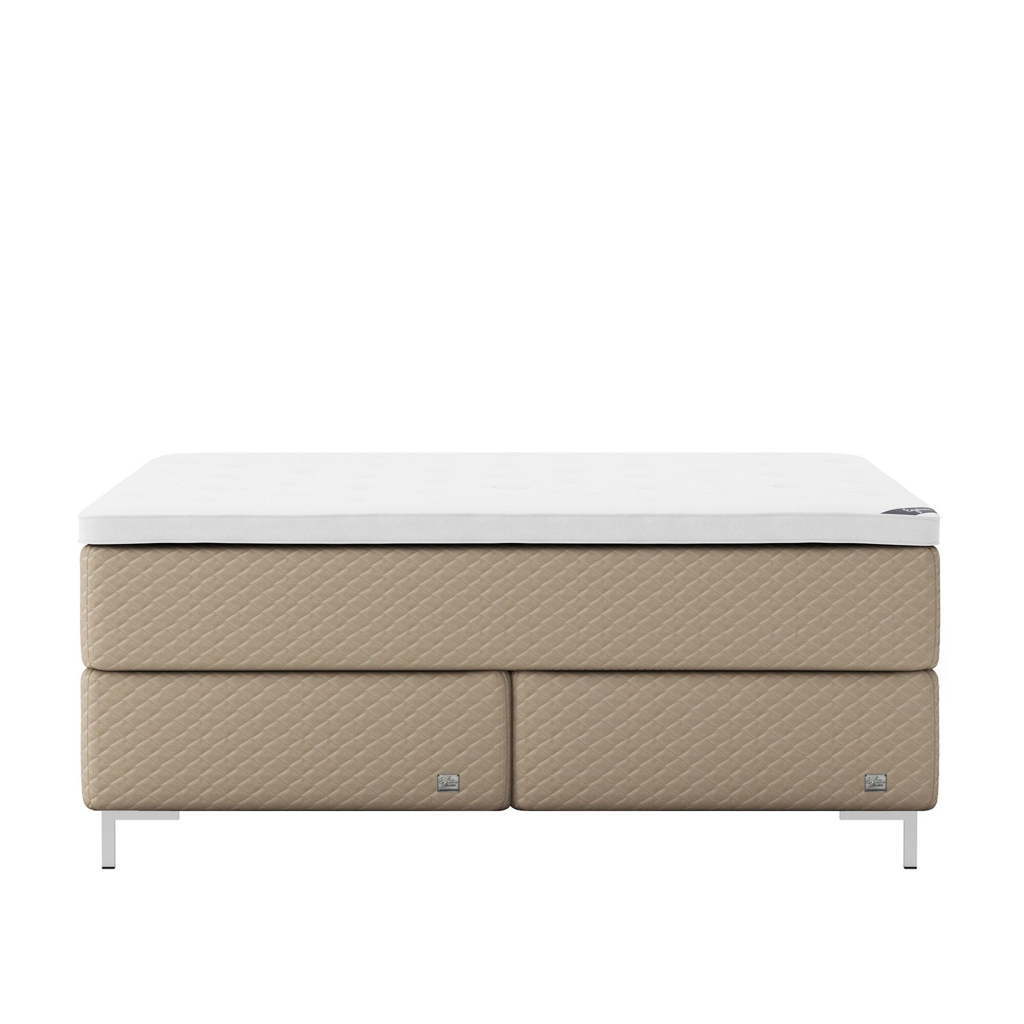 Englesson - Superior Kontinental Low Frame Firm 160Wx210L Pearl Dubbelsäng, Sängben Borstad Aluminium 12 cm, Bäddmadrass Sense Plus - Sängar - Beige