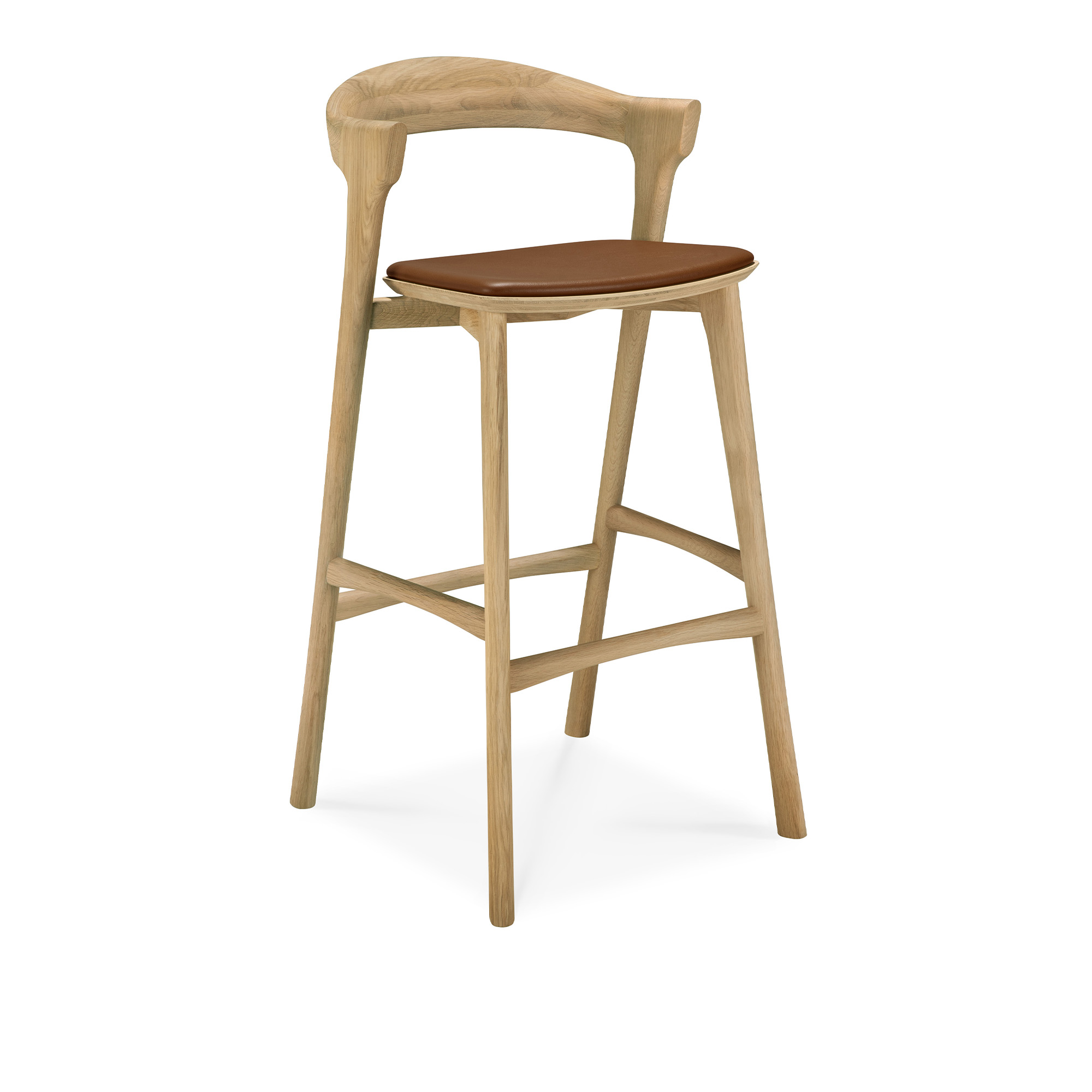 Ethnicraft - Bok Bar Stool - Varnished Oak - Cognac Leather - Barstolar - Alain Van Havre - Träfärgad - Trä