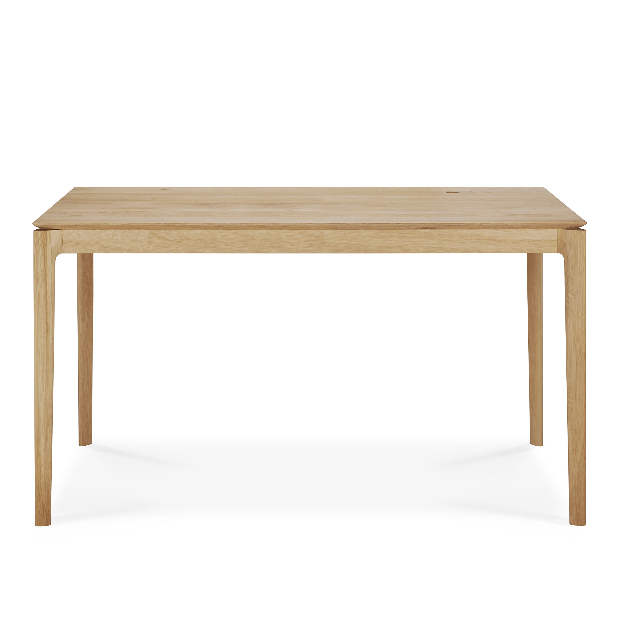 Ethnicraft - Bok Desk - Varnished Oak - Rectangular - With Cable Management 140 x 70 cm - Skrivbord - Alain Van Havre - Träfärgad - Trä
