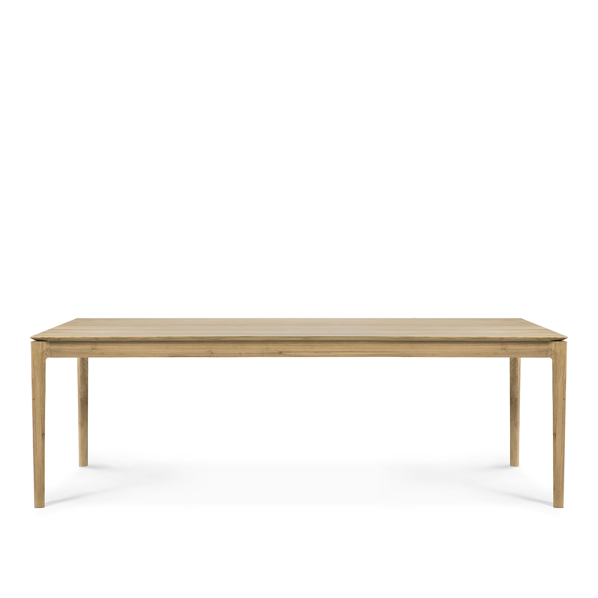Bok Dining Table av Alain van Havre för Ethnicraft kombinerar ett lätt och elegant intryck med en ytterst solid konstruktion. Med hjälp av enkla med ändå komplexa detaljer har man skapat ett matbord som håller under lång tid, formmässigt såväl som hållbarhetsmässigt. Matbordet Bok finns även i svartbetsad ek. Se även tillhörande bänk i samma serie.