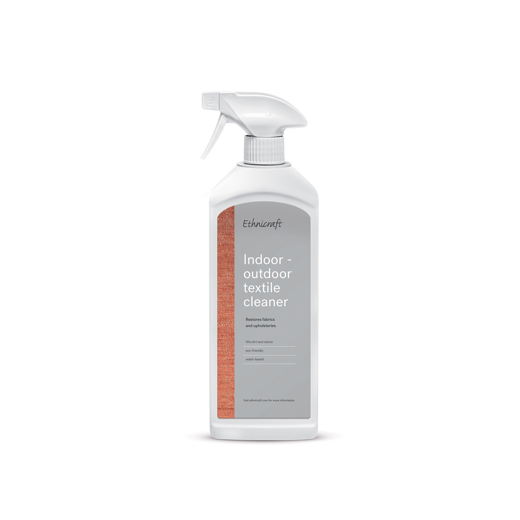 Indoor-Outdoor Textile Cleaner är en rengöringsprodukt från det belgiska varumärket Ethnicraft. Produkten ingår i varumärkets care-kollektion och är utvecklad för rengöring och underhåll av textilier och tyger. Den är avsedd för användning på både inomhus- och utomhustextilier samt möbelklädslar. Formuleringen är vattenbaserad och miljösäker, med syfte att avlägsna smuts och fläckar och hjälpa till att bevara textiliernas ursprungliga utseende. Rengöringsmedlet används på möbler och andra ytor med textilklädsel. Applicera alltid enligt instruktionerna på flaskan och följs aktuella skötselråd för materialet.