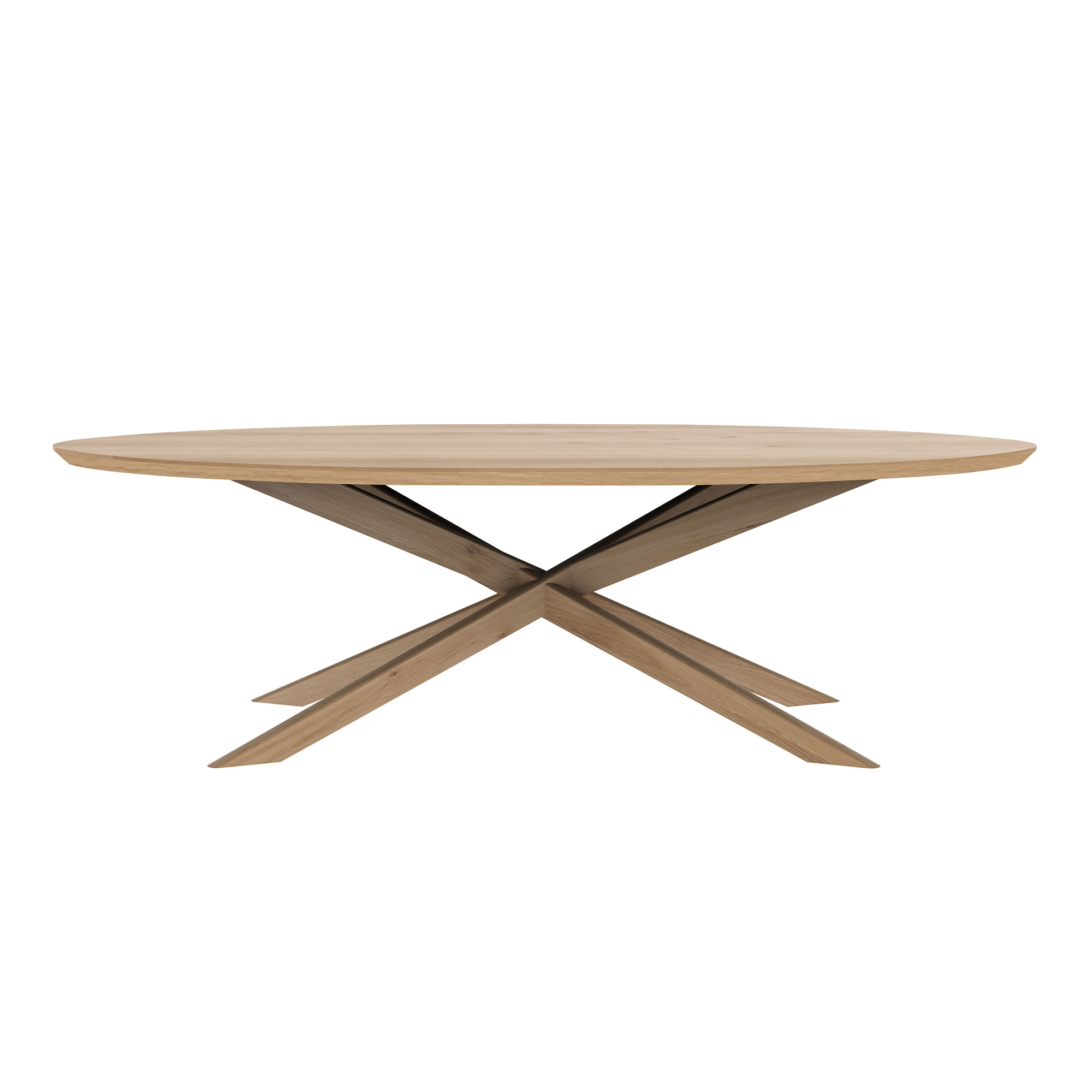Mikado Oval Coffee Table är ett soffbord från Ethnicraft av formgivaren Alain van Havre. Mikado är ett stabilt träbord med ett vackert underrede – de kraftiga bordsbenen är sammankopplade i ett konstnärligt mönster som möts i mitten. I Mikado-serien ingår en rad bord i olika storlekar och utföranden.