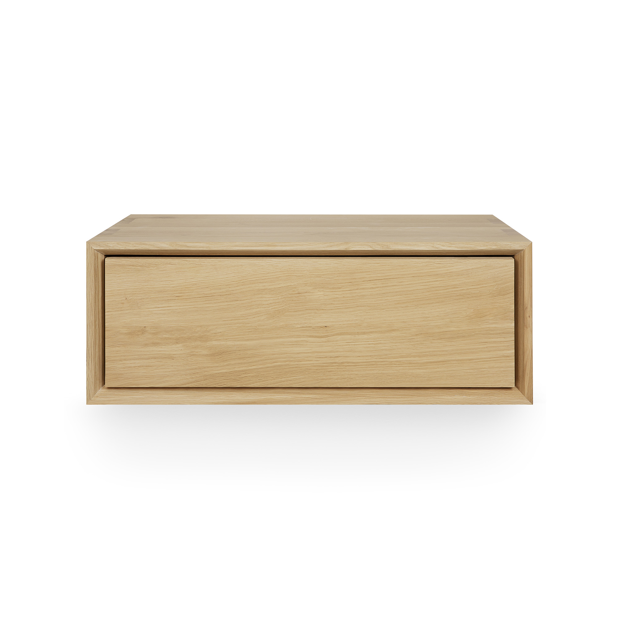 Nordic II Hanging Bedside från Ethnicraft är ett vägghängt sängbord i massiv ek och med en låda. Tack vare att det monteras på väggen kan du själv välja den höjd som passar. Kan givetvis användas för andra ändamål än just som sängbord, exempelvis som sidobord bredvid soffan eller som en praktiskt hylla i hallen.