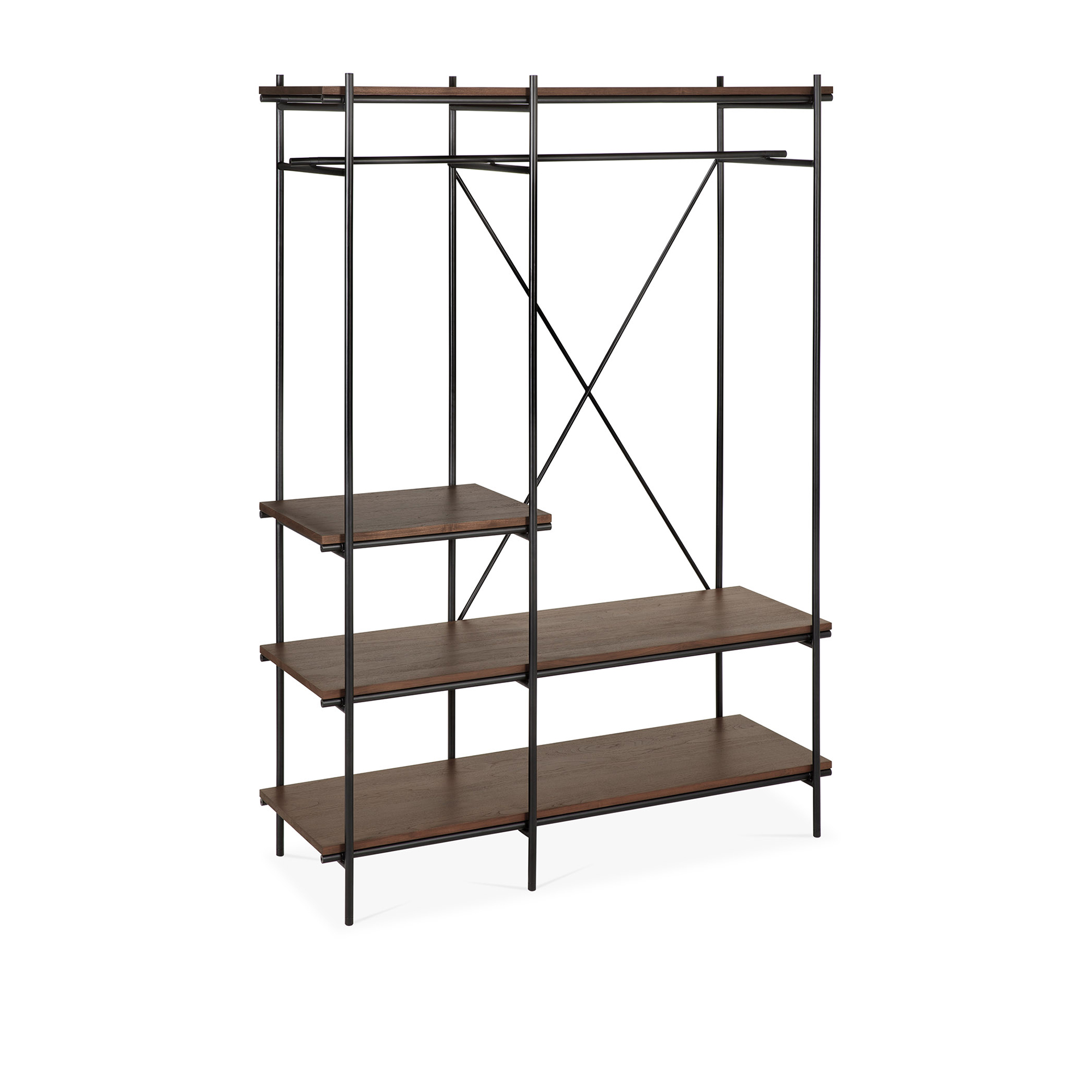Ethnicraft - Oscar Hanging Rack - Varnished Teak - Brown - With Garment Rail 140 x 51 x 197 - Hyllor & Hyllsystem - Alain Van Havre - Träfärgad - Trä