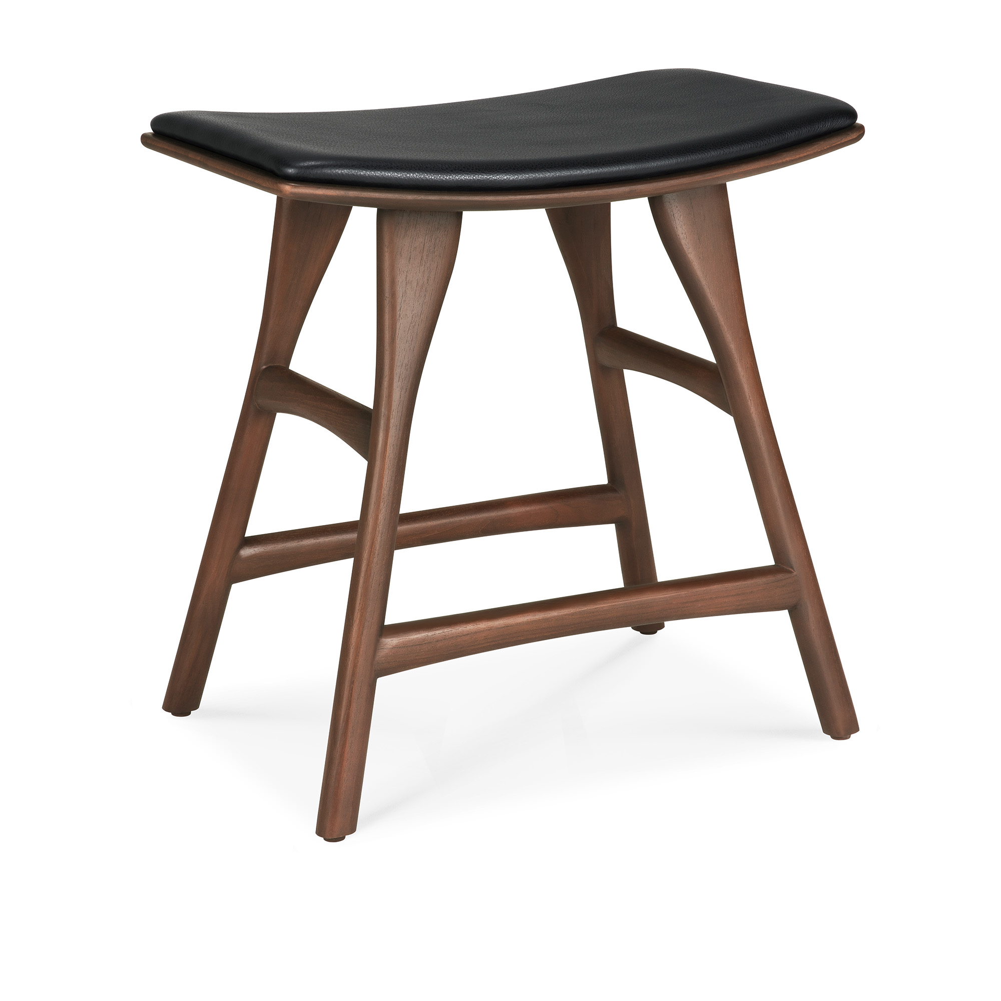 Formgiven av Ethnicraft Design Studio år 2011 och ingår i Osso-kollektionen. Pallen är tillverkad i massiv teak och har en sits klädd i svart läder. Den fungerar som sittmöbel och passar för användning i matsal, hall eller vardagsrum. Kombinationen av trä och läder gör den lämplig för daglig användning i inomhusmiljöer.