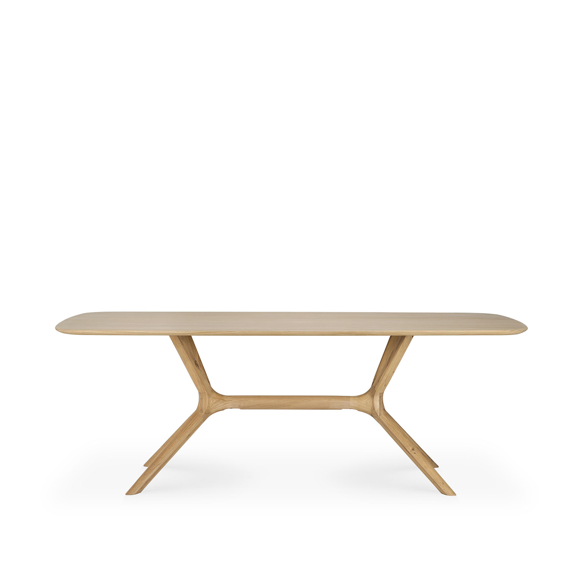 X Dining Table är ett elegant ekbord formgivet av Alain van Havre för Ethnicraft. Bordet har fått sitt namn från underredet som formar två kryss och binds ihop av en solid träbalk. Samspelet i det skickliga hantverket gör sig påmind i den unika formen på underredet och de mjukt rundade hörnen på bordsskivan. X Dining Table är tillverkad av solid ek med en hårdvaxoljad finish. Komplex i all sin enkelhet och rymmer upp till åtta personer runt bordet. Välj mellan två storlekar.