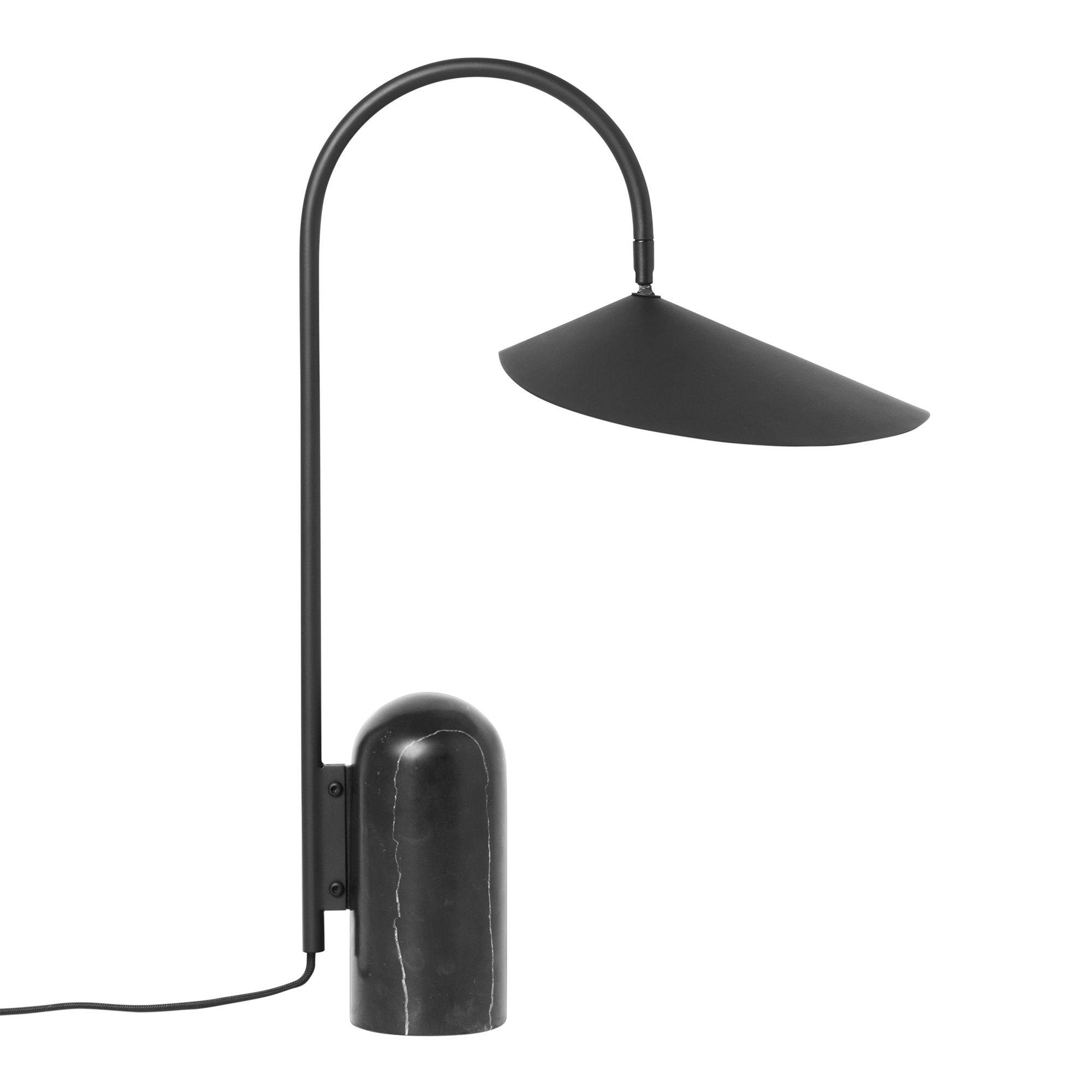 Arum är en bordslampa med fot i marmor eller travertine och skärm i metall från danska Ferm Living. Den stadiga lampfoten ger, i kombination med den organiskt formade lampskärmen, en vacker kontrast och en säregen karaktär till den tidlösa lampan. Lampans konstruktion är ett perfekt avvägt balansspel där lampans arm och skärm väger upp den kraftiga foten. Den ljusa, matta insidan på lampans bladlika skärm ger ett mjukt och jämnt sken. Skärmen kan justeras för att få ett optimalt ljussken för olika miljöer och situationer.