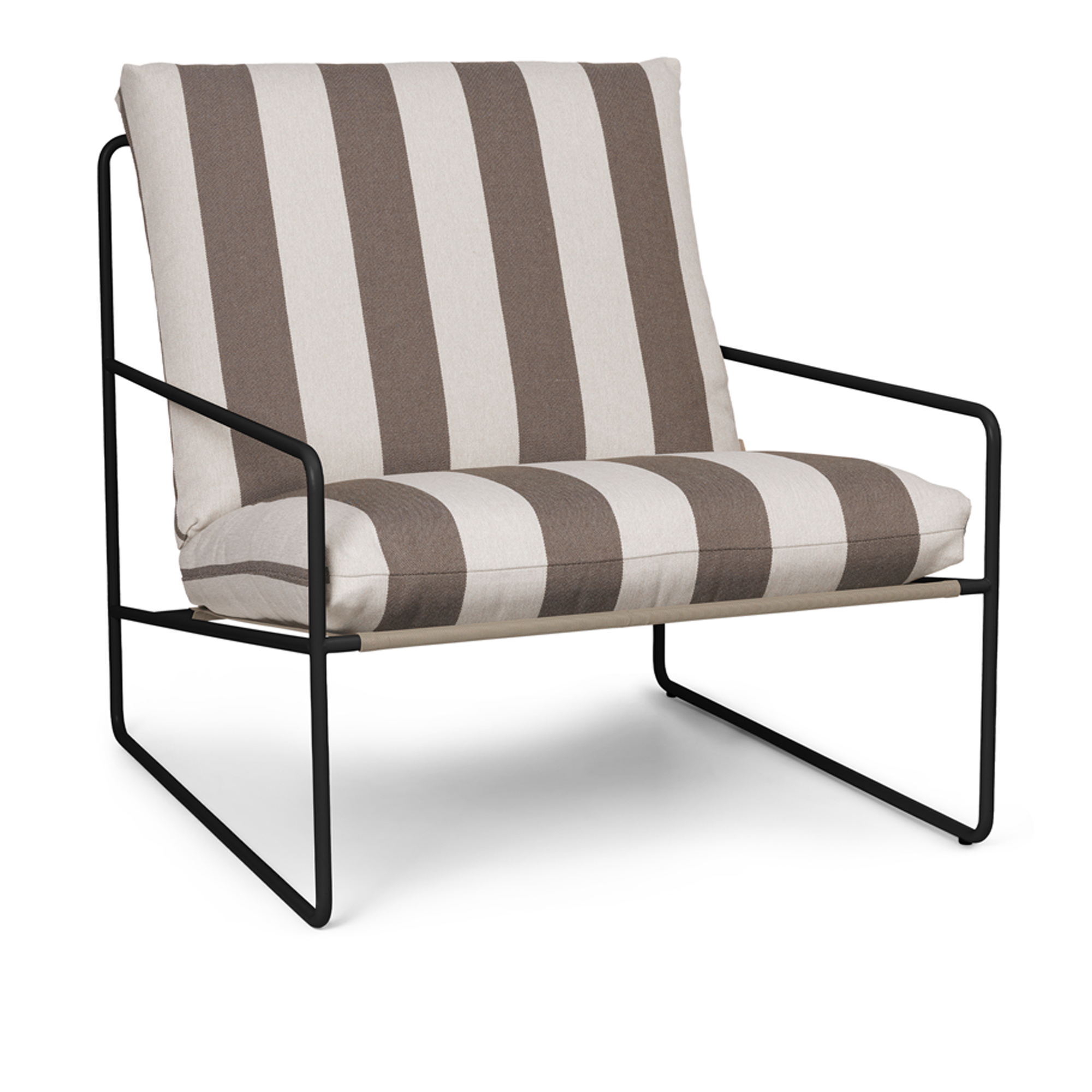 Ferm Living - Desert 1-seater Black Stripe - Chocolate - Fåtöljer utomhus - Brun - Metall/Syntetiskt/Skum/Plast