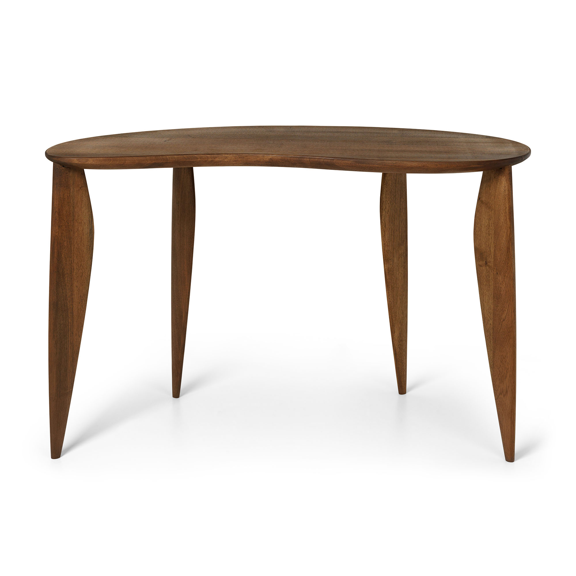 Feve Desk är ett multifunktionellt bord från danska Ferm Living, tillverkat i FSC™-certifierad europeisk valnöt. Bordets namn kommer från franskans Fève, som betyder böna, vilket speglar bordets eleganta form som skiljer sig från traditionella skrivbord.