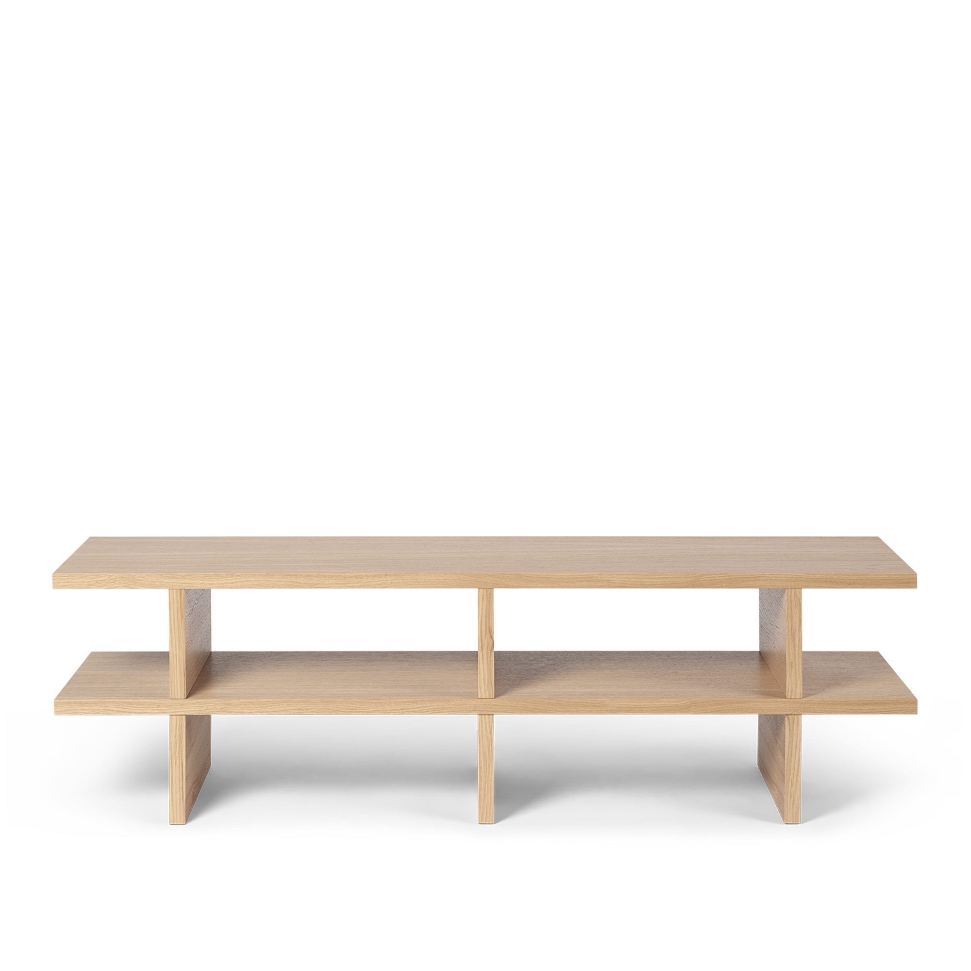 Kona Bench är designad av varumärket Ferm Living. Bänken är formgiven med hög funktionalitet och med inslag av Japandi-estetik. Den är FSC-certifierad och tillverkad av ekfaner med MDF-kärna. Denna mångsidiga bänk har en praktisk öppen förvaring under sittytan som är idealisk för böcker i vardagsrummet, skor i entrén eller som ett elegant förvaringstillägg vid sängens ände.