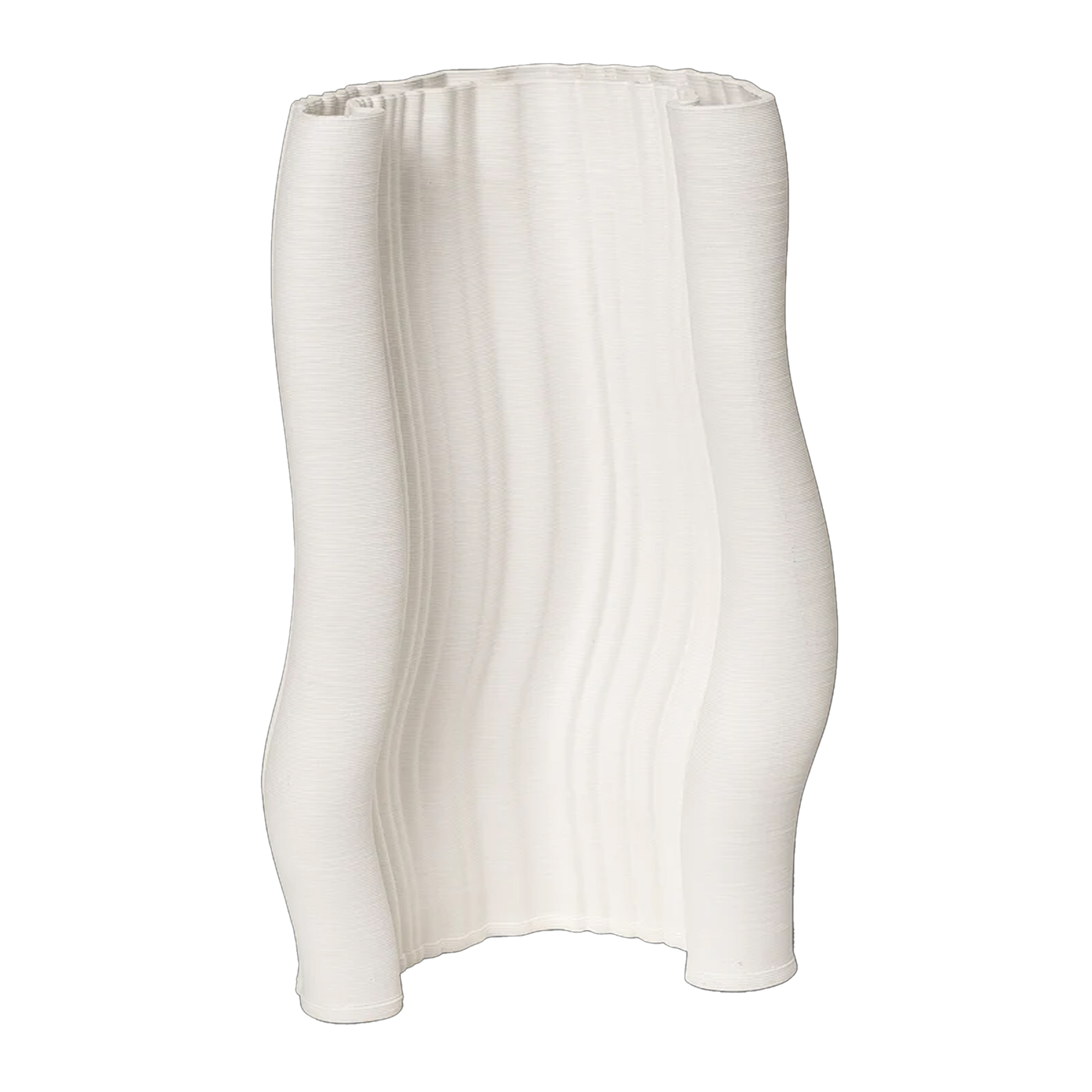 Moire Vase från Ferm Living är en vas inspirerad av Moiré-mönstret, vars namn kommer från det franska ordet för ""vattnad"" och är en grafisk effekt som uppstår när det organiska och geometriska krockar. Vasen som är tillverkad I 3D-printad lera har flera tunna lager som gradvis bildar ett fint mönster. Vasen är lika dekorativ tom som fylld med blommor.