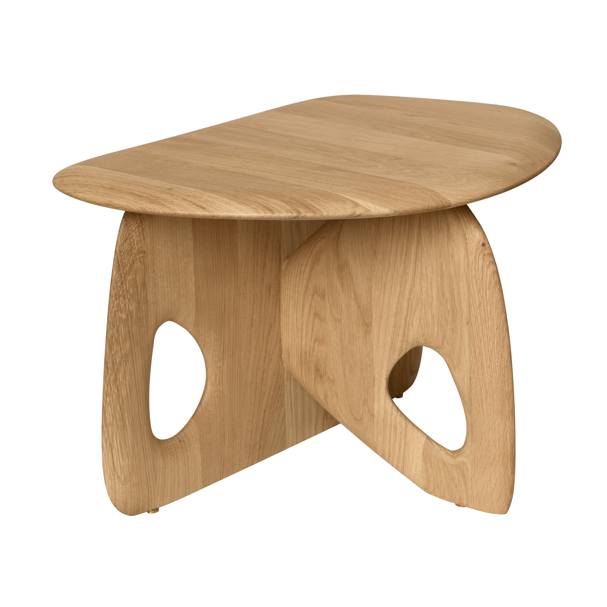 Oar soffbord är ett vardagsrumsbord i massiv ek från det danska varumärket Ferm Living. Formen kännetecknas av mjuka kurvor och utskurna detaljer i benen som ger bordet ett skulpterat uttryck. Soffbordet är tillverkat av FSC®-certifierad ek med oljad yta och kompletteras med fötter i mässing som bidrar till både stabilitet och materialkontrast.